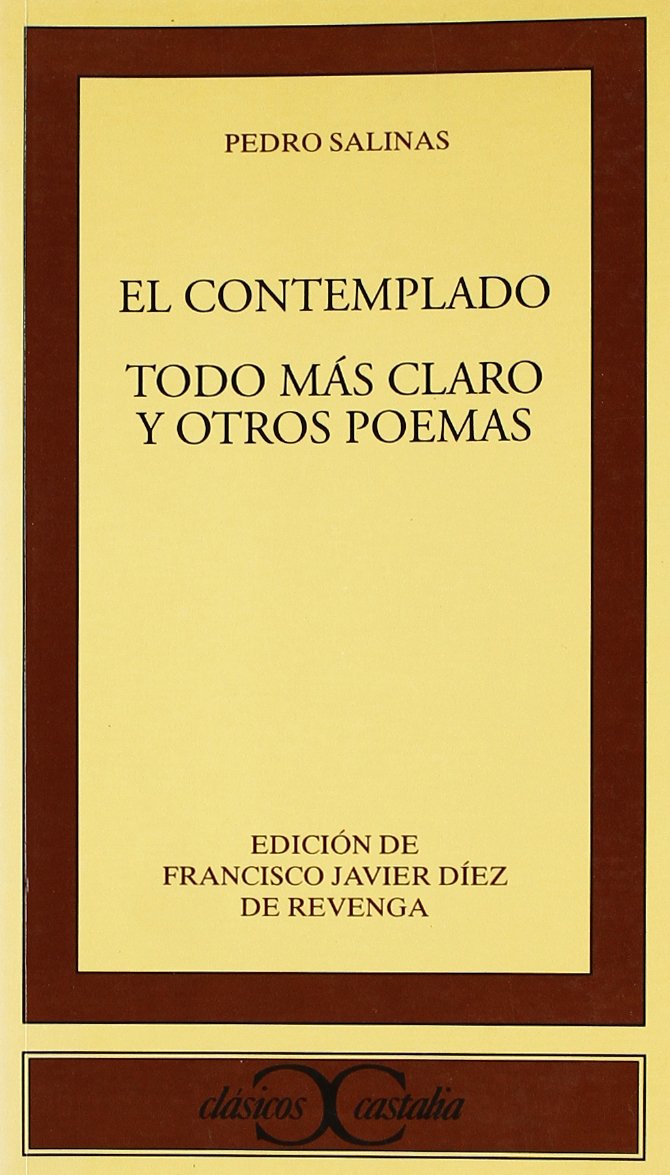 La primera obra publicada por Salinas tras su salida de España y tras la guerra civil fue El contemplado, a cuya génesis y circunstancias biográficas se ha referido un selecto sector de lacrítica y los estudiosos del poeta. Se trata de un libro sin duda muy terminado para el poeta que prefirió ofrecerlo a la editorial antes que otros poemas que tenía ya en marcha o finalizados. En esta obra, sin duda, había procurado crear una poesía, dentro de su producción y de su estilo, nueva.Todo más claro y otros poemas mantiene la llama inextinguible del ciclo amoroso en su parte última, también presidida por la angustia, la angustia de la separación y del final del episodio amoroso. Es un documento literario ciertamente excepcional.