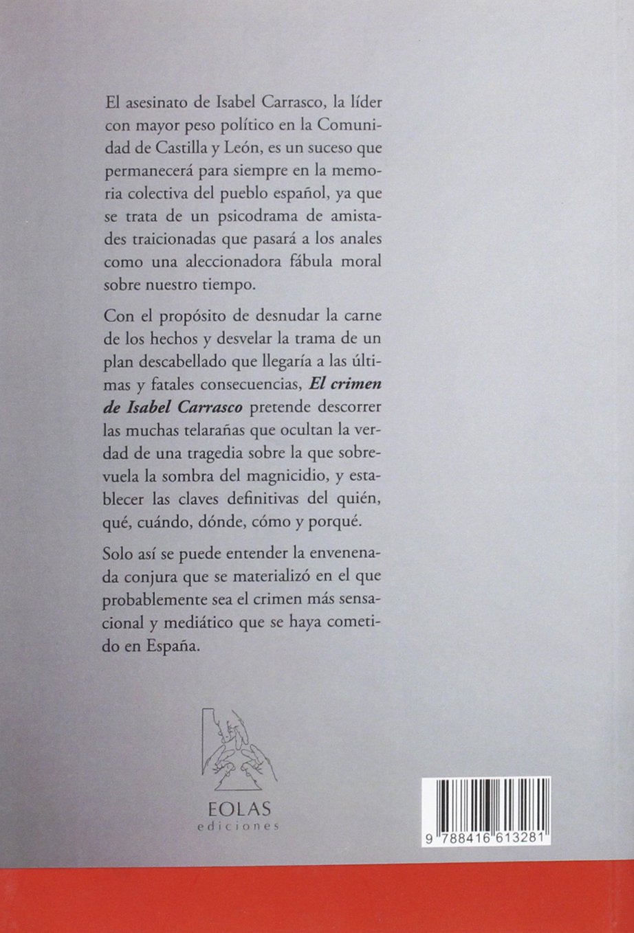 El asesinato de Isabel Carrasco, la líder con mayor peso político en la Comunidad de Castilla y León, es un suceso que permanecerá para siempre en la memoria colectiva del pueblo español, ya que se trata de un psicodrama de amistades traicionadas que pasará a los anales como una aleccionadora fábula moral sobre nuestro tiempo. Con el propósito de desnudar la carne de los hechos y desvelar la trama de un plan descabellado que llegaría a las últimas y fatales consecuencias, El crimen de Isabel Carrasco pretende descorrer las muchas telarañas que ocultan la verdad de una tragedia sobre la que sobrevuela la sombra del magnicidio, y establecer las claves definitivas del quién, qué, cuándo, dónde, cómo y porqué. Solo así se puede entender la envenenada conjura que se materializó en el que probablemente sea el crimen más sensacional y mediático que se haya cometido en España.