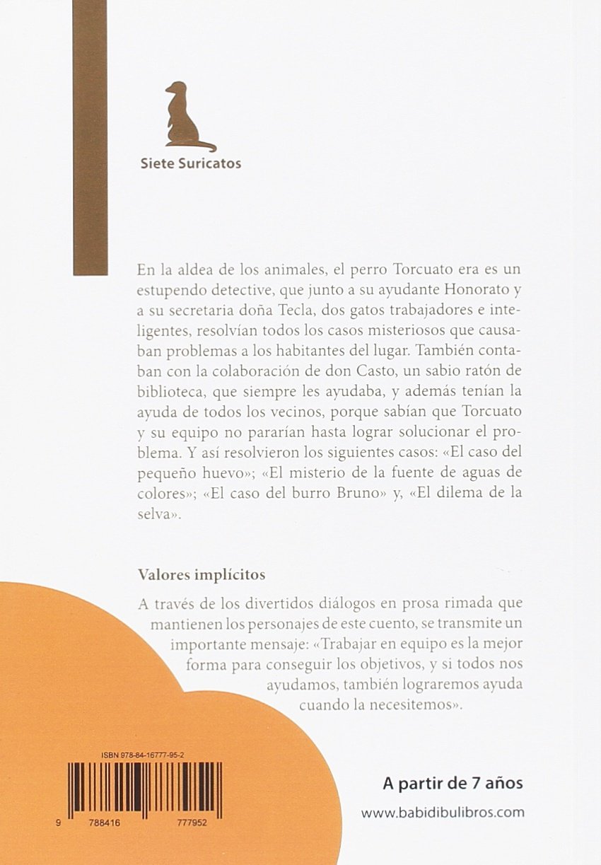 Mediante una serie de aventuras narradas a través de un divertido lenguaje en prosa rimada, los niños podrán descubrir importantes valores humanos.En la aldea de los animales, el perro Torcuato era es un estupendo detective, que junto a su ayudante Honorato y a su secretaria doña Tecla, dos gatos trabajadores e inteligentes, resolvían todos los casos misteriosos que causaban problemas a los habitantes del lugar. También contaban con la colaboración de don Casto, un sabio ratón de biblioteca, que siempre les ayudaba, y además tenían la ayuda de todos los vecinos, porque sabían que Torcuato y su equipo no pararían hasta lograr solucionar el problema. Y así resolvieron los siguientes casos: «El caso del pequeño huevo»; «El misterio de la fuente de aguas de colores»; «El caso del burro Bruno» y, «El dilema de la selva».