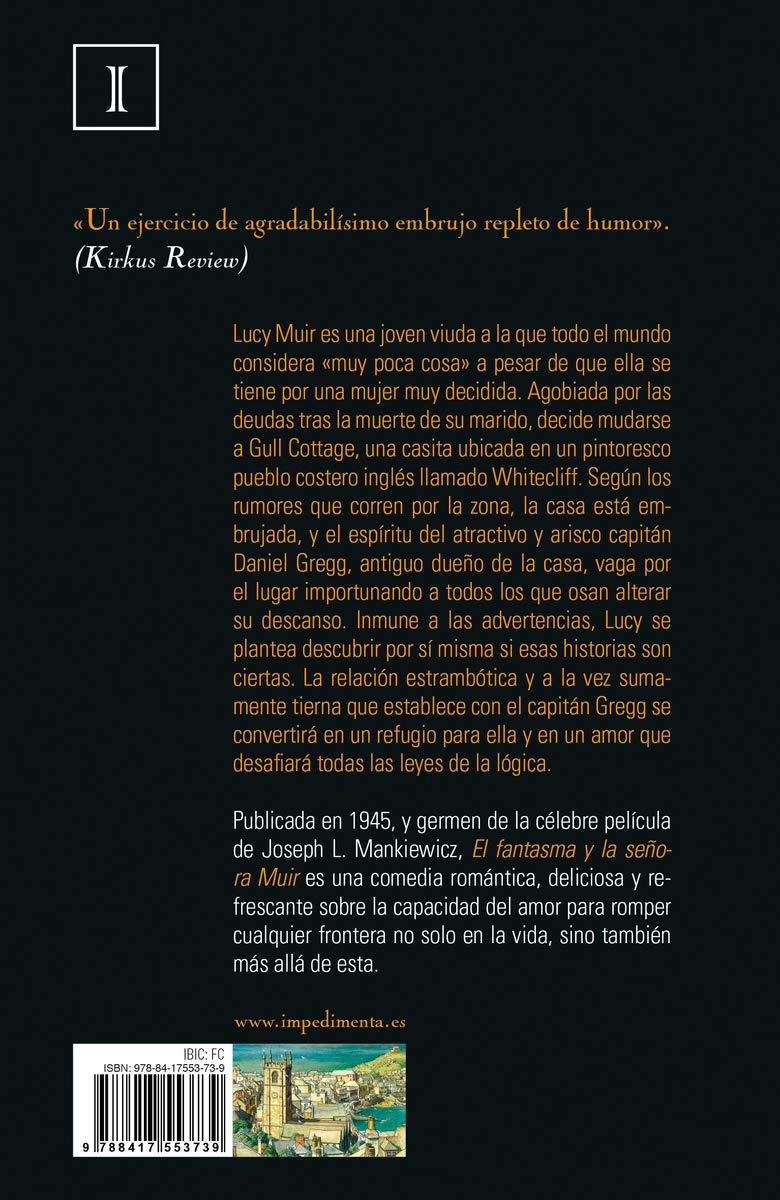 Lucy Muir es una joven viuda a la que todo el mundo considera «muy poca cosa», a pesar de que ella se tiene por una mujer muy decidida. Agobiada por las deudas tras la muerte de su marido, decide mudarse a Gull Cottage, una casita ubicada en Whitecliff, un pintoresco pueblo costero inglés, en la que nadie ha querido vivir desde hace años. Según los rumores que corren por la zona, la casa está embrujada, y el espíritu del atractivo y arisco capitán Daniel Gregg, antiguo dueño de la casa, vaga por el lugar importunando a todos los que osan alterar su descanso. Inmune a las advertencias, Lucy se plantea descubrir por sí misma si esos rumores son ciertos. Decidida a sacar adelante a sus hijos, pronto tendrá que enfrentarse a la dura realidad. Hasta que, inevitablemente, entre el fantasma y ella surge el amor. La relación estrambótica y a la vez sumamente tierna con el capitán Gregg se convertirá en un refugio para ella, así como en un amor que desafiará todas las leyes de la lógica y del mundo en el que viven. Publicada en 1945, fue la novela que inspiró la mítica película de Joseph L. Mankiewicz protagonizada por Gene Tierney y Rex Harrison. Una comedia romántica, encantadora y poética, deliciosa y refrescante que explora la capacidad del amor para romper fronteras no solo en la vida, sino también más allá de esta.
