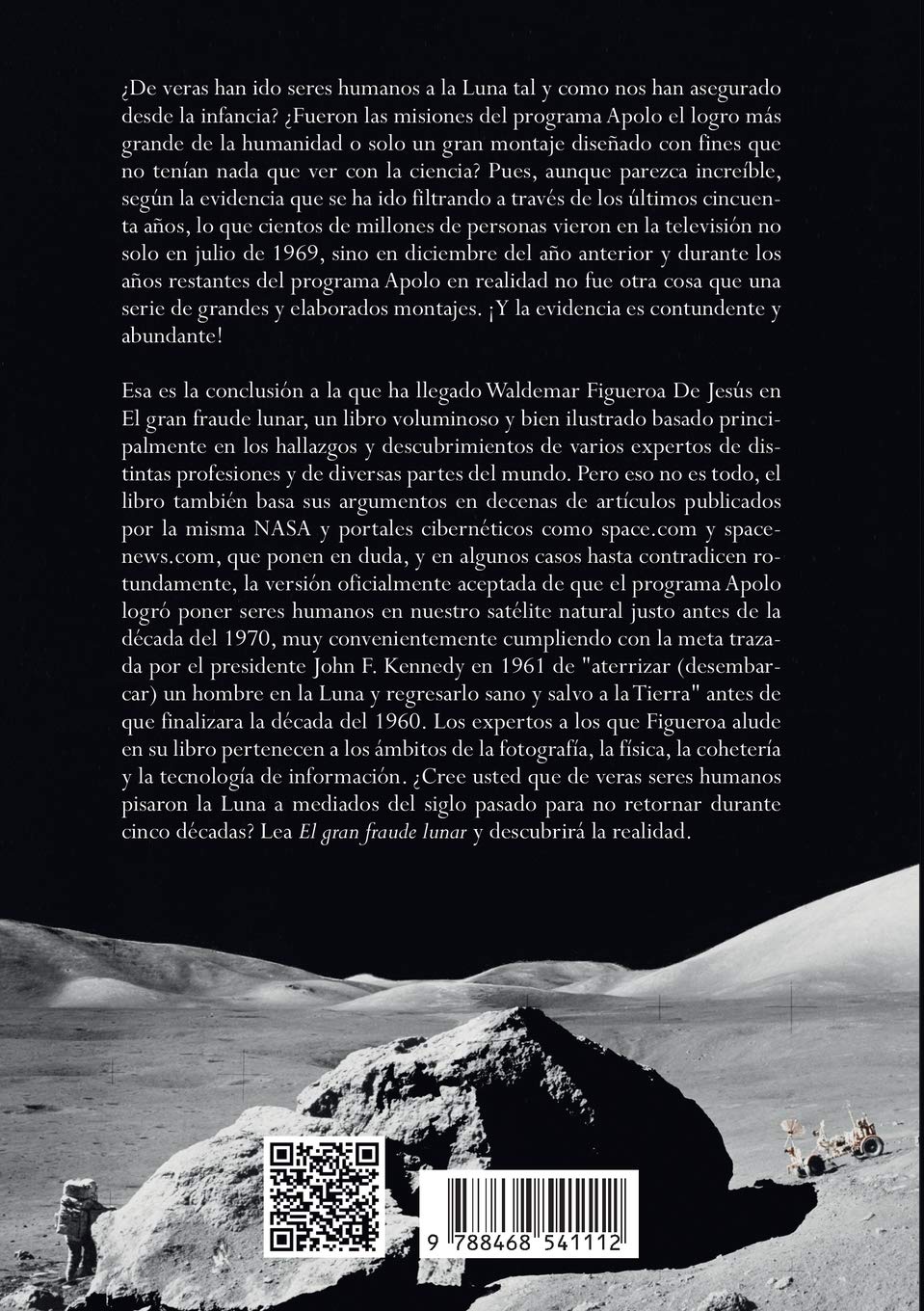 ¿De veras han ido seres humanos a la Luna tal y como nos han asegurado desde la infancia? ¿Fueron las misiones del programa Apolo el logro más grande de la humanidad o solo un gran montaje diseñado con fines que no tenían nada que ver con la ciencia? Pues, aunque parezca increíble, según la evidencia que se ha ido filtrando a través de los últimos cincuenta años, lo que cientos de millones de personas vieron en la televisión no solo en julio de 1969, sino en diciembre del año anterior y durante los años restantes del programa Apolo en realidad no fue otra cosa que una serie de grandes y elaborados montajes. ¡Y la evidencia es contundente y abundante!Esa es la conclusión a la que ha llegado Waldemar Figueroa De Jesús en El gran fraude lunar, un libro voluminoso y bien ilustrado basado principalmente en los hallazgos y descubrimientos de varios expertos de distintas profesiones y de diversas partes del mundo. Pero eso no es todo, el libro también basa sus argumentos en decenas de artículos publicados por la misma NASA y portales cibernéticos como space.com y spacenews.com, que ponen en duda, y en algunos casos hasta contradicen rotundamente, la versión oficialmente aceptada de que el programa Apolo logró poner seres humanos en nuestro satélite natural justo antes de la década del 1970, muy convenientemente cumpliendo con la meta trazada por el presidente John F. Kennedy en 1961 de “aterrizar (desembarcar) un hombre en la Luna y regresarlo sano y salvo a la Tierra” antes de que finalizara la década del 1960. Los expertos a los que Figueroa alude en su libro pertenecen a los ámbitos de la fotografía, la física, la cohetería y la tecnología de información. ¿Cree usted que de veras seres humanos pisaron la Luna a mediados del siglo pasado para no retornar durante cinco décadas? Lea El gran fraude lunar y descubrirá la realidad.