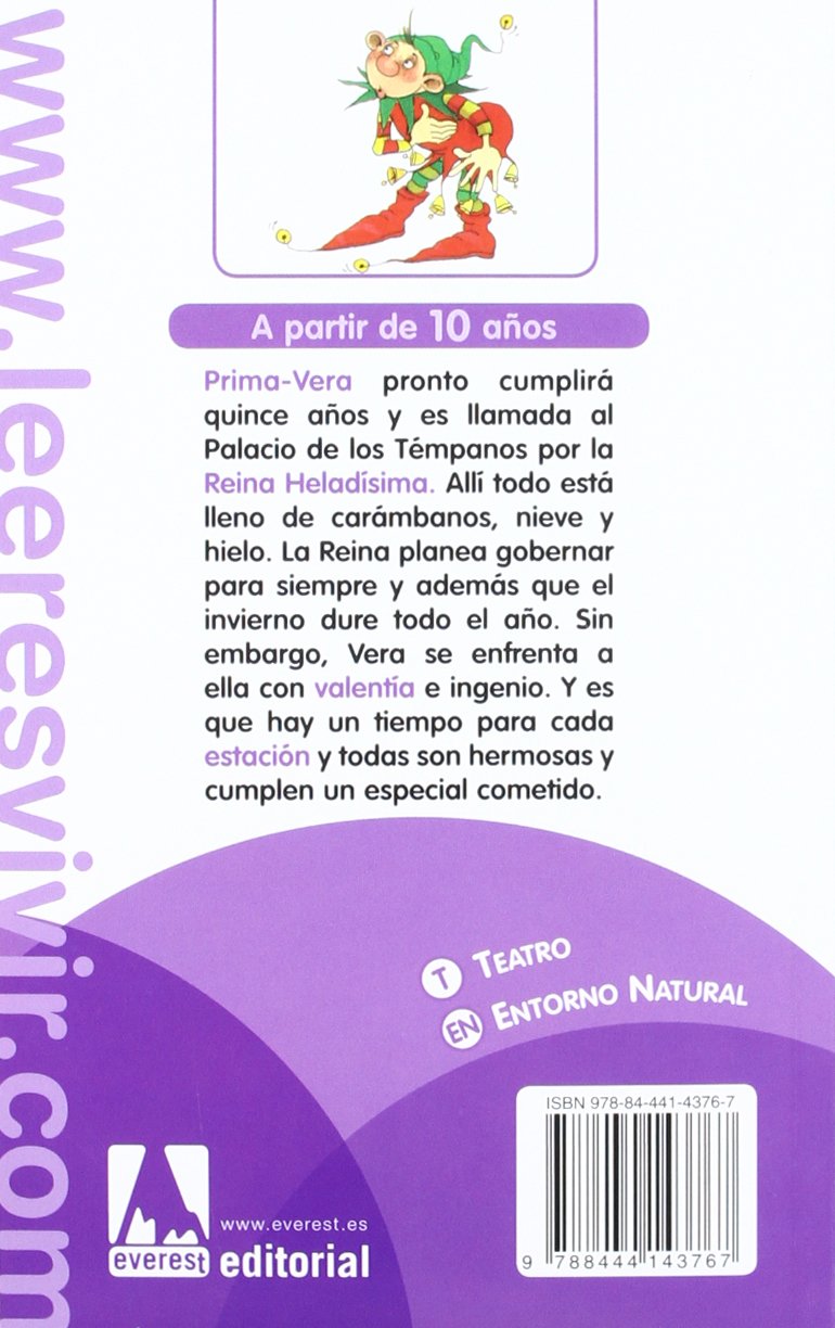 Prima-Vera pronto cumplirá 15 años y es llamada al Palacio de los Témpanos por la Reina Heladísima, su prima. Allí todo está lleno de carámbanos, estalactitas, nieve y hielo. Todo, incluso los corazones. La Reina tiene planes para gobernar siempre y que el invierno dure todo el año pero Vera, ayudada por Duende Marzo y Duende Agosto, se enfrenta a ella con valentía e ingenio. Cuando la Reina le concede un regalo de cumpleaños, ella pide un abanico muy especial. ¡El abanico del Rey Verano! ¿Quieres saber qué ocurre cuando Vera sopla el abanico con su aliento de hada? Un texto teatral ameno, que llevado a escena o leído, relata con originalidad y simpatía que hay un tiempo para cada estación y todas son hermosas y cumplen un cometido. Este texto ha sido galardonado con el primer Premio Nacional Mª José Jove de escritura teatral infantil.