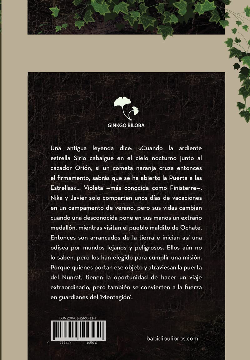 Adéntrate en un viaje fantástico por mundos desconocidos y peligrosos de otro universo para descubrir el secreto oculto en el Mentagión, un medallón misterioso.Una antigua leyenda dice: «Cuando la ardiente estrella Sirio cabalgue en el cielo nocturno junto al cazador Orión, si un cometa naranja cruza entonces el firmamento, sabrás que se ha abierto la Puerta a las Estrellas»…Violeta más conocida como Finisterre, Nika y Javier solo comparten unos días de vacaciones en un campamento de verano, pero sus vidas cambian cuando una desconocida pone en sus manos un extraño medallón, mientras visitan el pueblo maldito de Ochate. Entonces son arrancados de la tierra e inician así una odisea por mundos lejanos y peligrosos. Ellos aún no lo saben, pero los han elegido para cumplir una misión. Porque quienes portan ese objeto y atraviesan la puerta del Nunrat, tienen la oportunidad de hacer un viaje extraordinario, pero también se convierten a la fuerza en guardianes del Mentagión.