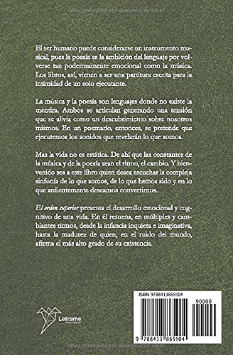 El ser humano puede considerarse un instrumento musical, pues la poesía es la ambición del lenguaje por volverse tan poderosamente emocional como la música. Los libros, así, vienen a ser una partitura escrita para la intimidad de un solo ejecutante.La música y la poesía son lenguajes donde no existe la mentira. Ambos se articulan generando una tensión que se alivia como un descubrimiento sobre nosotros mismos. En un poemario, entonces, se pretende que ejecutemos los sonidos que revelarán lo que somos.Mas la vida no es estática. De ahí que las constantes de la música y de la poesía sean el ritmo, el cambio. Y bienvenido sea a este libro quien desea escuchar la compleja sinfonía de lo que somos, de lo que hemos sido y en lo que ardientemente deseamos convertirnos.El orden superior presenta el desarrollo emocional y cognitivo de una vida. En él resuena, en múltiples y cambiantes ritmos, desde la infancia inquieta e imaginativa, hasta la madurez de quien, en el ruido del mundo, afirma el más alto grado de su existencia.