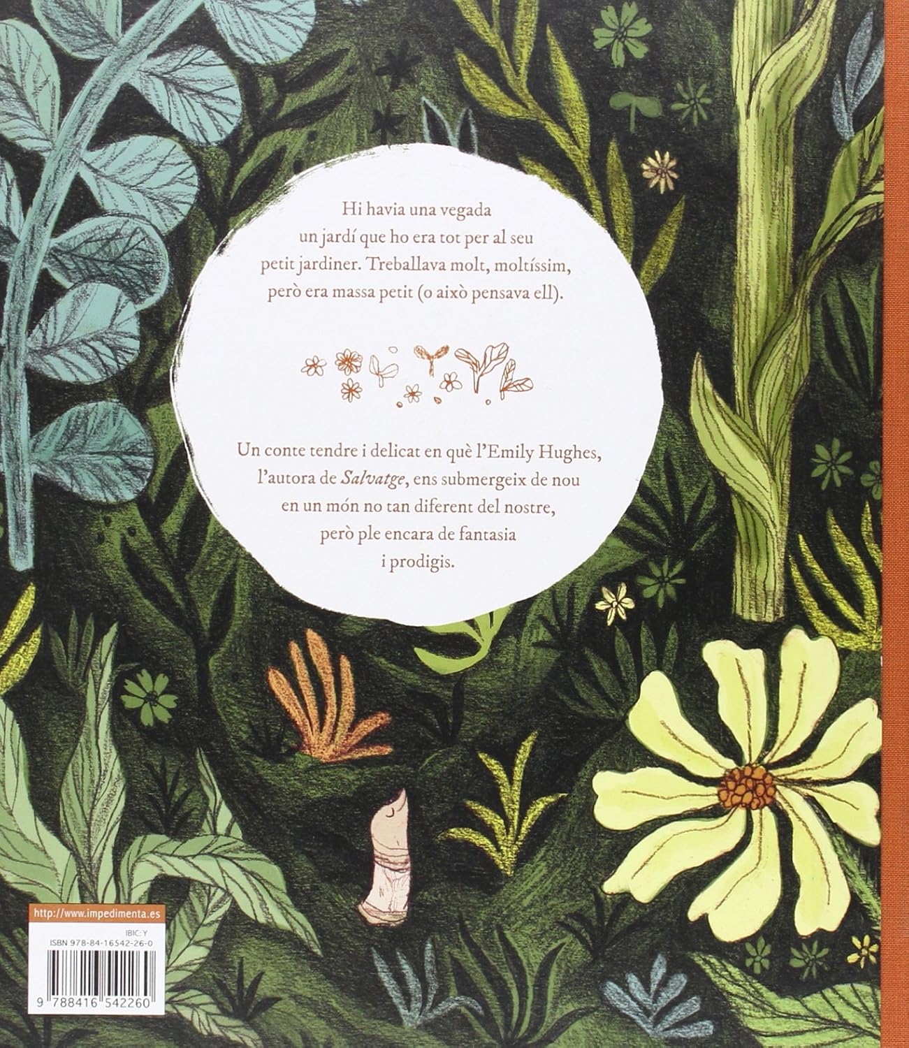 «Aquest era el jardí. No semblava gran cosa, però per al seu jardiner ho era tot.» Així co-mença «El petit jardiner», una petita història plena de grans emocions. Emily Hughes, lau-tora del llibre «Salvatge», Premi Llibreter al mi-llor Àlbum il·lustrat 2015, torna per sorpren-drens amb la commovedora història dun nen, no més gran que la seva mascota, que no es veu amb cor de fer-se càrrec del seu exube-rant jardí. Fins que un dia decideix demanar ajuda. Una delicada faula sobre la perseveran-ça, lentusiasme i la força de lamor que agra-darà els més petits i entendrirà els cors dels més grans. Les vibrants il·lustracions dEmily Hughes omplen de vida el petit jardí amb detalls i impressionants colors, fins al punt que desit-gem perdrens entre les seves meravelloses plantes i les seves precioses flors. Un nou i deliciós àlbum d’Emily Hughes (autora de «Salvatge», Premi Llibreter 2015). Una història minúscula que inaugura la nostra col·lecció La Petita Impedimenta.