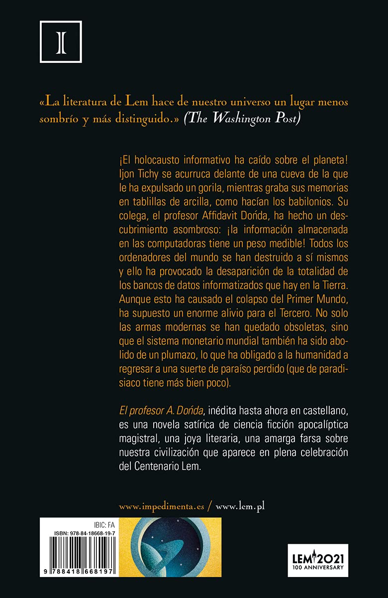 ¡El holocausto informativo ha caído sobre el planeta! Ijon Tichy se acurruca delante de una cueva de la que le ha expulsado un gorila, mientras graba sus memorias en tablillas de arcilla, como hacían los babilonios. Su colega, el profesor Affidavit Donda, ha hecho un descubrimiento asombroso: ¡la información almacenada en las computadoras tiene un peso medible! Todos los ordenadores del mundo se han destruido a sí mismos y ello ha provocado la desaparición de la totalidad de los bancos de datos informatizados que hay en la Tierra. Aunque esto ha causado el colapso del Primer Mundo, ha supuesto un enorme alivio para el Tercero. No solo las armas modernas se han quedado obsoletas, sino que el sistema monetario mundial también ha sido abolido de un plumazo, lo que ha obligado a la humanidad a regresar a una suerte de paraíso perdido (que de paradisiaco tiene más bien poco).