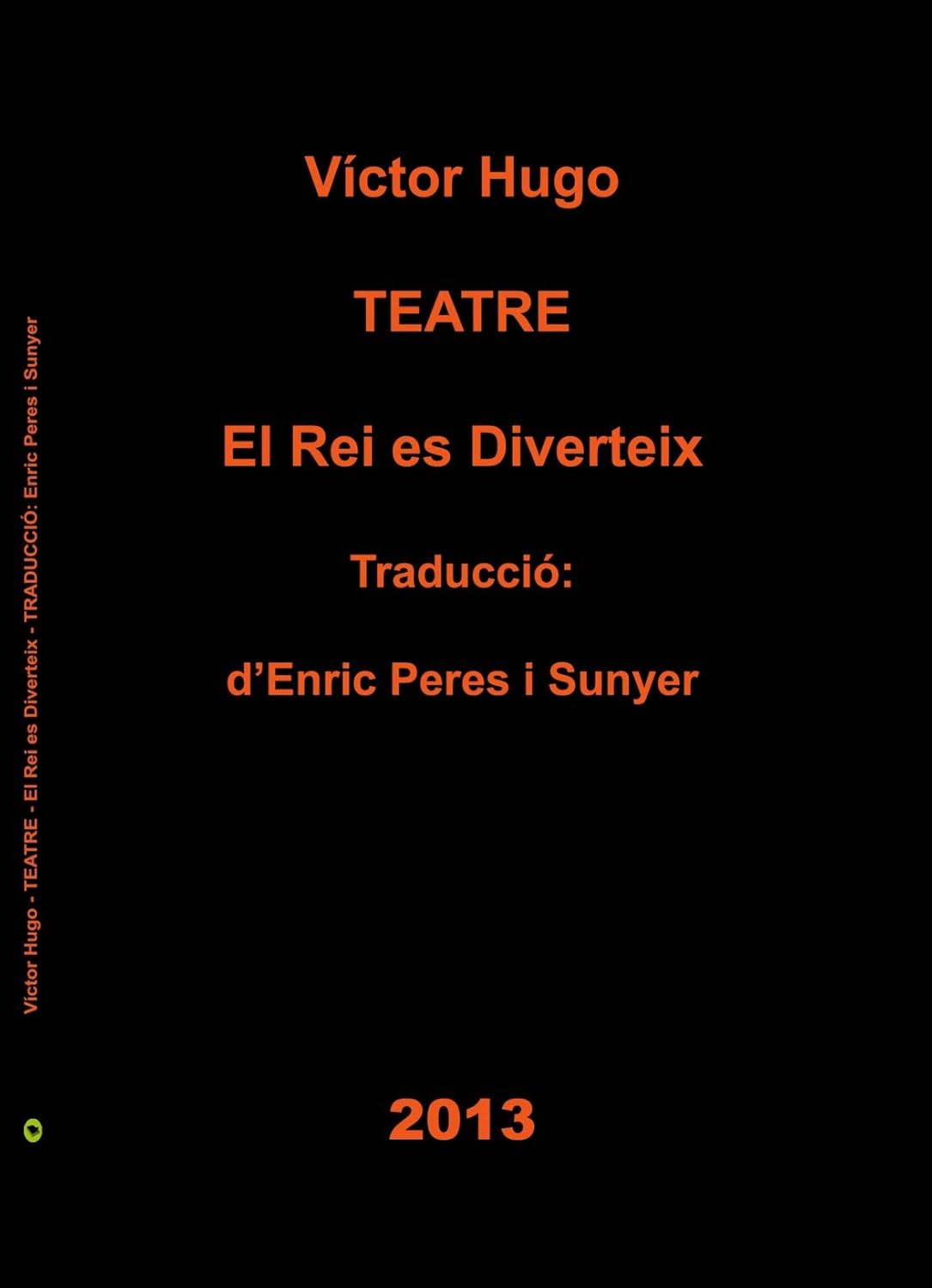 VíctorHugo (Besançon, 1802 ? París, 1883) és unautor romàntic francès d’una obra monumental que abastatots els gèneres literaris: assaig (William Shakespere, 1864,El Prefaci de l’obra Cromwell, 1827…); història (Estudisobre Mirabeau, 1834); poesia (Els Càstigs, 1853, La Llegendadels Segles, 1859, Les Orientals, 1829…); novel·la(Bug-Jargal, 1819, Nostra Senyora de París, 1831, ElsMiserables, 1862…); teatre (Cromwell, 1827, Hernaní, 1839,El Rei es Diverteix, 1832, Rui Blas, 1838…) També ésautor d’una obra plàstica, menys coneguda.Aquípresentem la tercera traducció que hem fet d’una de les sevesobres dramàtiques: El Rei es Diverteix. Curiosament ha estatuna obra més popular gràcies a l’adaptaciómusical per a l’òpera que en féu Guiseppe Verdi, amb eltítol de Rigoletto.Arapodrem gaudir del seu text complert i, podrem constatar la sempreinteressant força dels seus versos, que desprenen la méspura essència de la presència humana.EPS.-