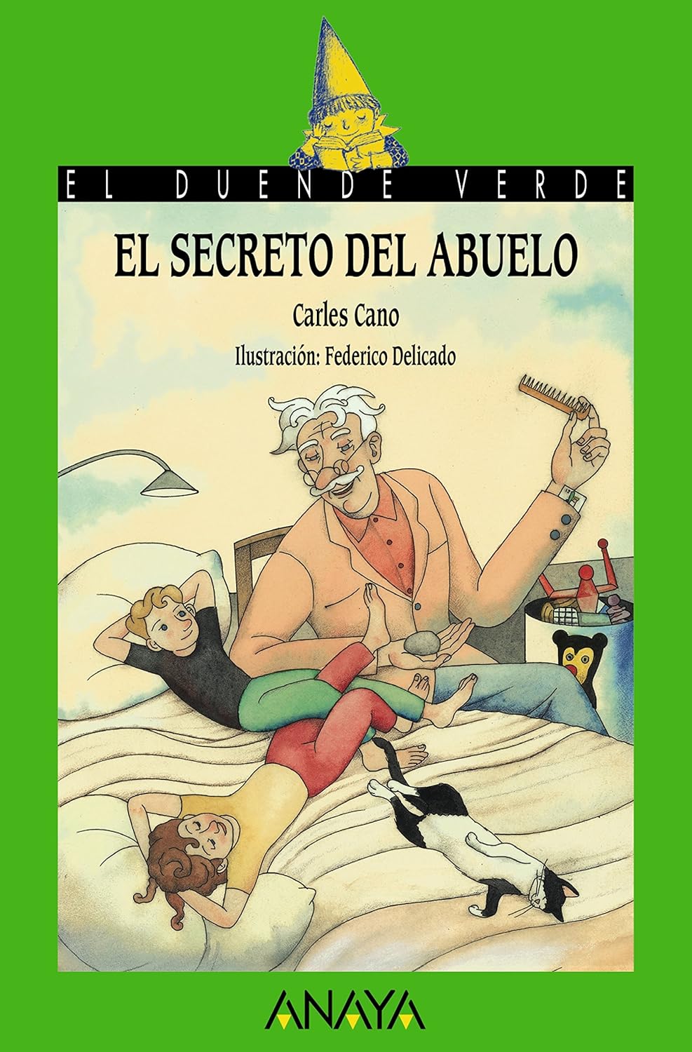 María y Miguel disfrutan de los cuentos que su abuelo Nicolás inventa para ellos cuando los visita o los lleva de excursión. Un buen día, los niños le preguntan que en qué se inspira para crear esos cuentos, y él les dice que salen de su cerebro y que sería capaz de inventar tantas historias como pelos tiene en la cabeza. Los niños no perderán la ocasión de retarle y así seguir disfrutando de sus narraciones.(Premio Lazarillo de Creación Literaria, 2016)