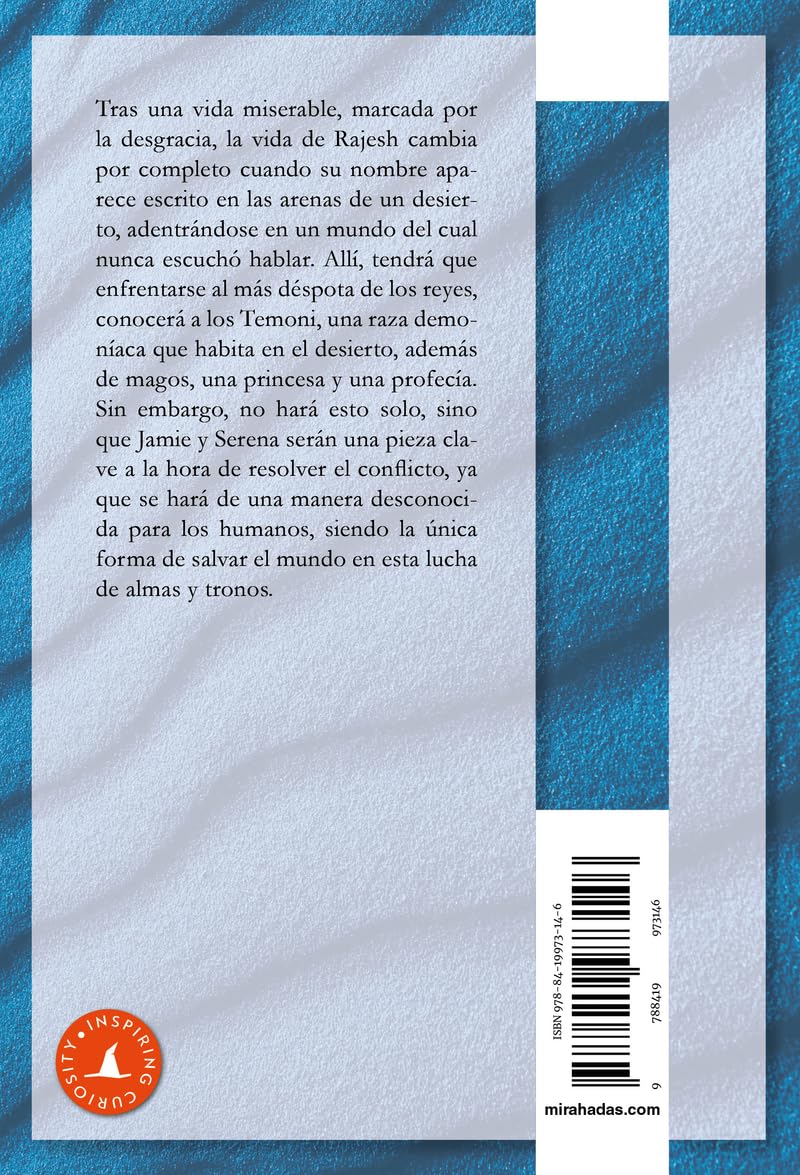 Tras una vida miserable, marcada por la desgracia, la vida de Rajesh cambia por completoTras una vida miserable, marcada por la desgracia, la vida de Rajesh cambia por completo cuando su nombre aparece escrito en las arenas de un desierto, adentrándose en un mundo del cual nunca escuchó hablar. Allí, tendrá que enfrentarse al más déspota de los reyes, conocerá a los Temoni, una raza demoníaca que habita en el desierto, además de magos, una princesa y una profecía. Sin embargo, no hará esto solo, sino que Jamie y Serena serán una pieza clave a la hora de resolver el conflicto, ya que se hará de una manera desconocida para los humanos, siendo la única forma de salvar el mundo en esta lucha de almas y tronos.