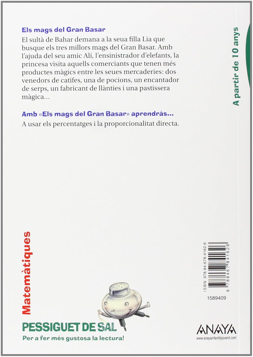 El sultà de Bahar demana a la seua filla Lia que busque els tres millors mags del Gran Basar. Amb l’ajuda del seu amic Alí, l’ensinistrador d’elefants, la princesa visita aquells comerciants que tenen més productes màgics entre les seues mercaderies: dos venedors de catifes, una de pocions, un encantador de serps, un fabricant de llànties i una pastissera màgica… Amb «Els mags del Gran Basar» aprendràs… A usar els percentatges i la proporcionalitat directa.