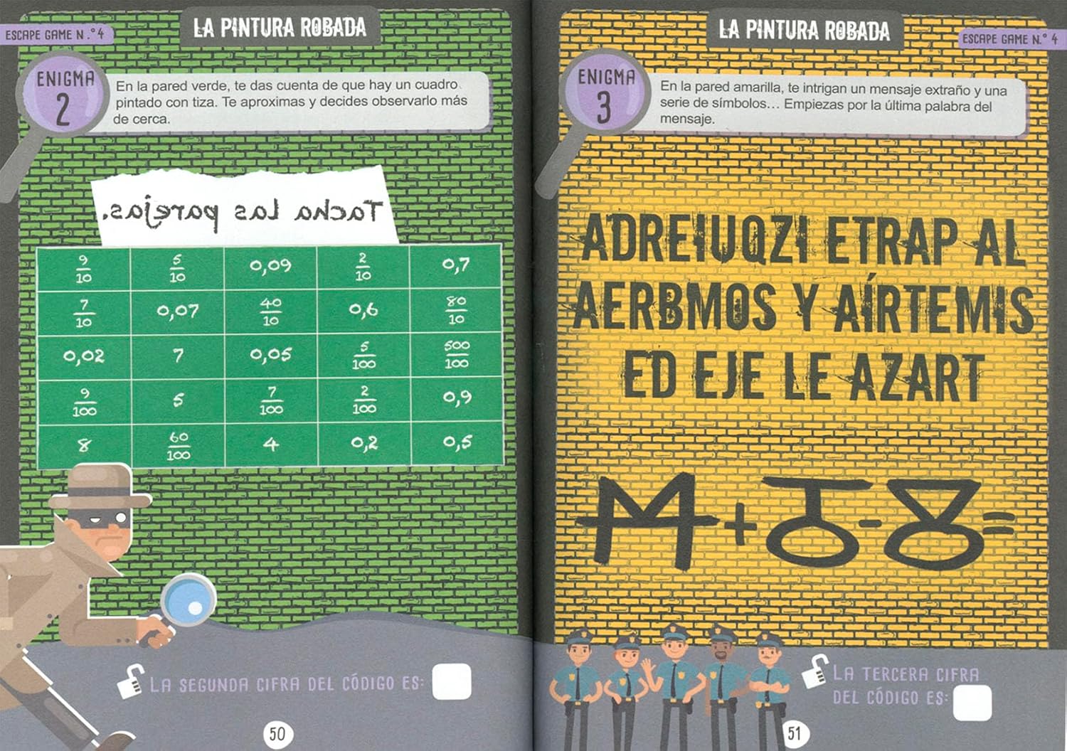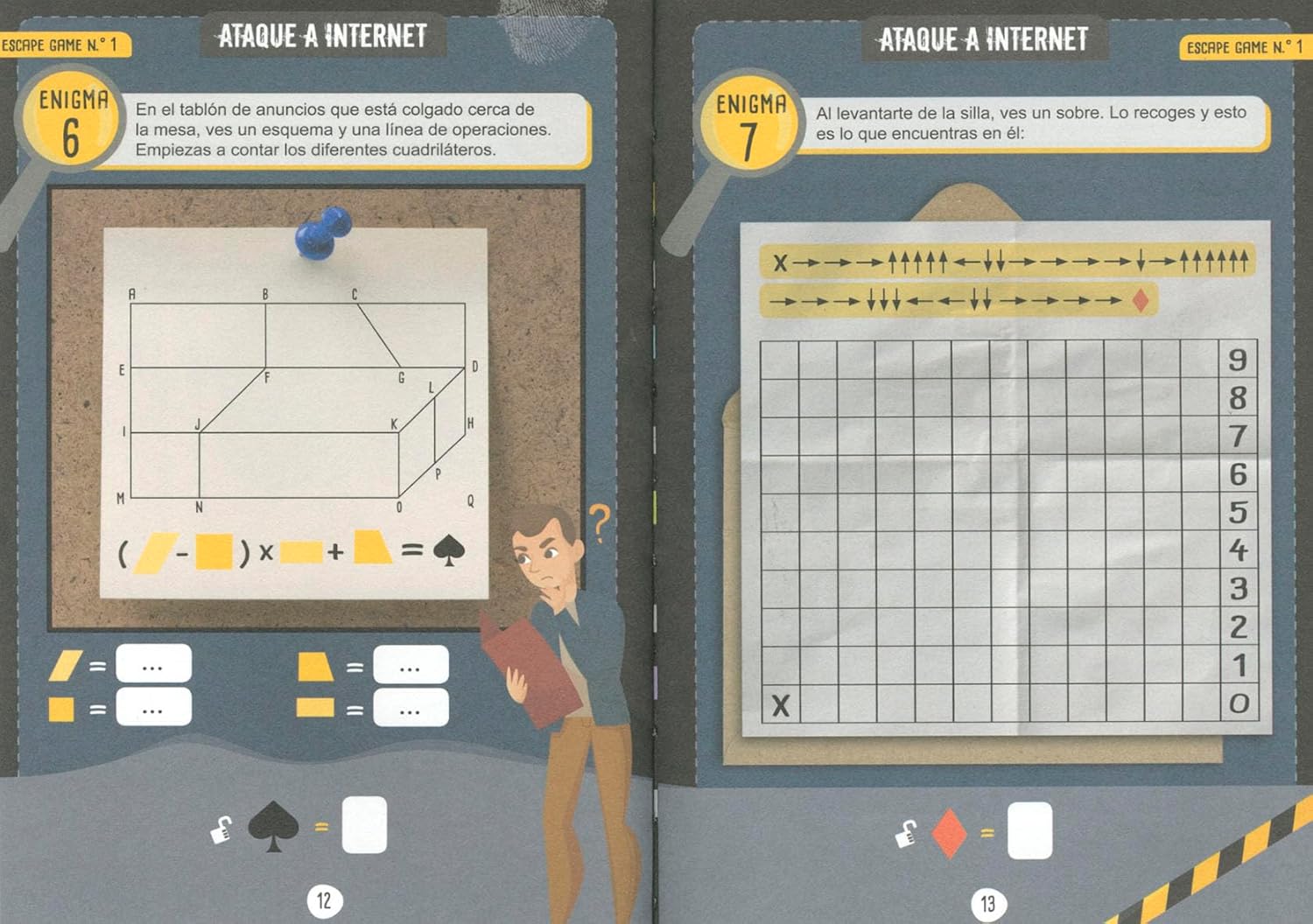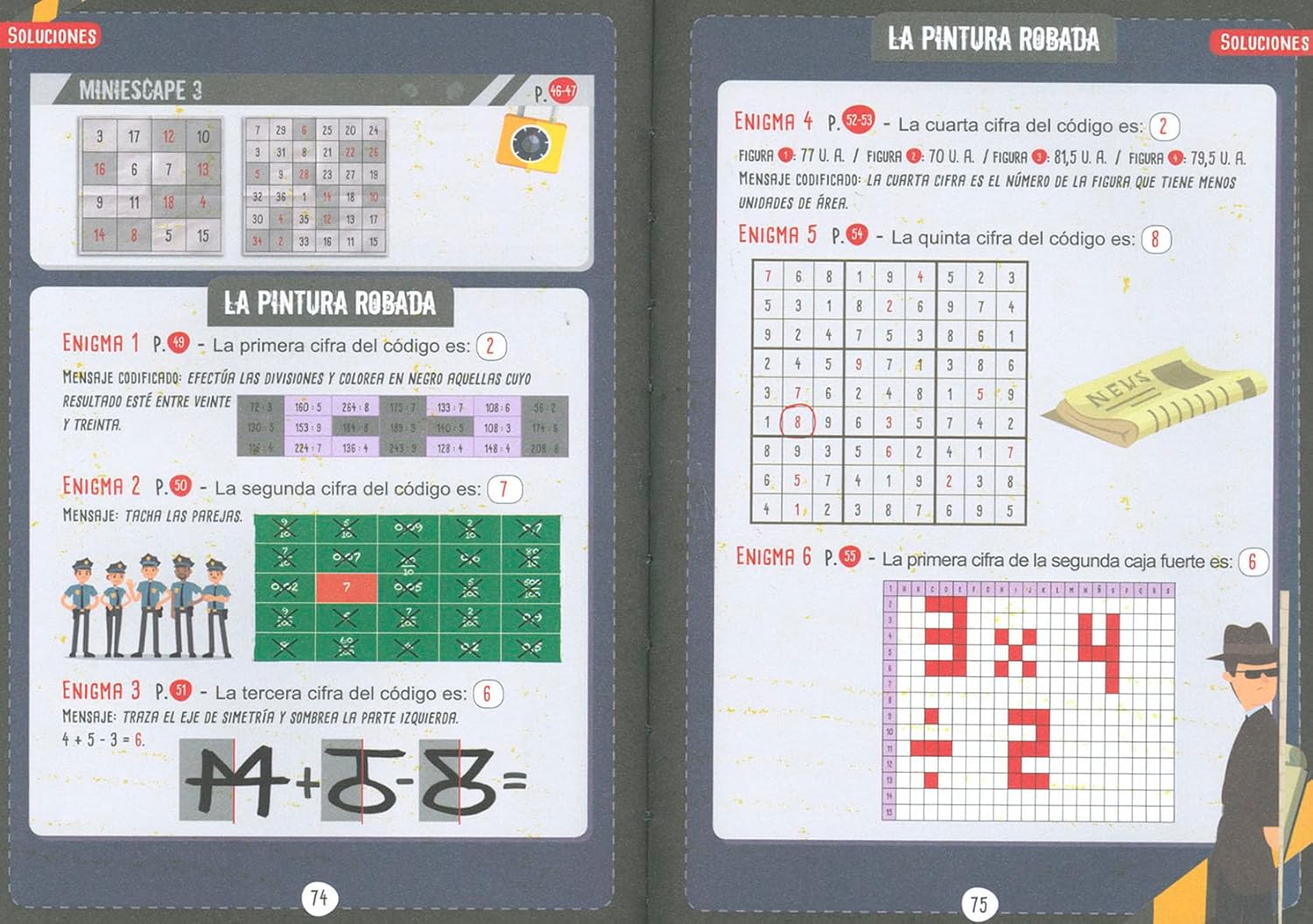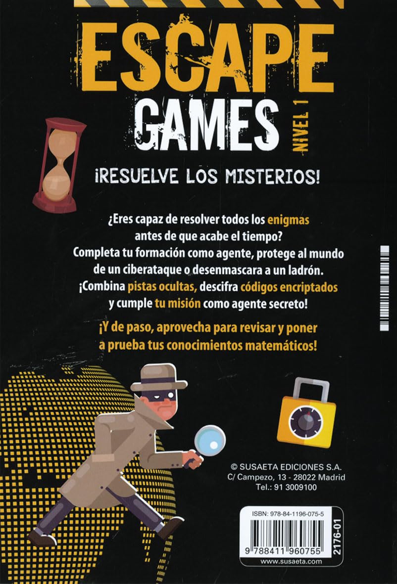 ¿Eres capaz de resolver todos los enigmas antes de que acabe el tiempo? Completa tu formación como agente, protege al mundo de un ciberataque o desenmascara a un ladrón. ¡Combina pistas ocultas, descifra códigos encriptados y cumple tu misión como agente secreto! ¡Y de paso, aprovecha para revisar y poner a prueba tus conocimientos matemáticos! “Escape Games” es un apasionante volumen con 4 juegos de evasión y otros 4 pequeños desafíos para que tu cerebro no pare nunca.