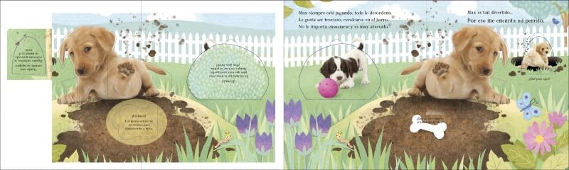 Este bonito libro de cartón con pop-ups y solapas les encanta a los más pequeños, ya que pueden interactuar y la lectura se convierte en un juego de descubrimientos.¡Ideal para niños y niñas de 0 a 3 años!Un encantador y divertido cuento con hermosas ilustraciones para los más pequeños.Al levantar las solapas los niños descubrirán cachorros aún más juguetones a los que les encanta divertirse…¿Por qué Buster ladra tanto? ¡Levanta la solapa para averiguarlo!¿Qué tesoro encontró Max enterrado bajo tierra? ¡Echa un vistazo en el pop-up para verlo!¿Qué cachorro travieso se prepara para zambullirte en el mar? Intenta adivinarlo y luego mira debajo de la solapa para ver si has acertado.¡El maravilloso mundo de los cachorros nunca ha sido tan emocionante!