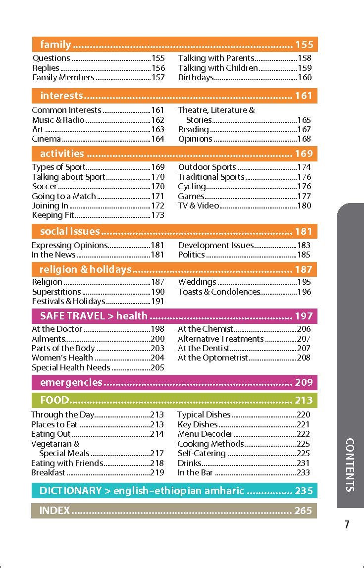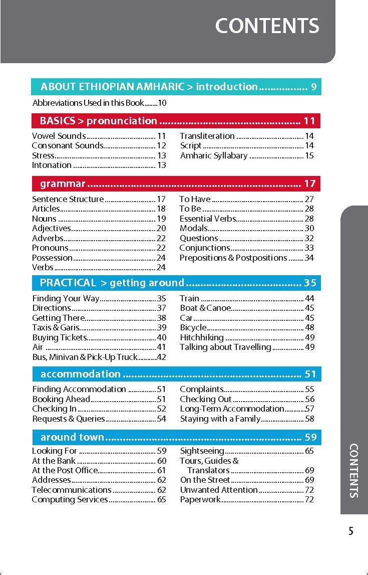 Lonely Planet Ethiopian Amharic Phrasebook & Dictionary is your handy passport to culturally enriching travels with the most relevant and useful Ethiopian Amharic phrases and vocabulary for all your travel needs. Chat with kids, haggle in the market, or find out where you can recycle; all with your trusted travel companion. With language tools in your back pocket, you can truly get to the heart of wherever you go, so begin your journey now!• Feel at ease with essential tips on culture, manners, idioms and multiple meanings.• Order with confidence, explain food allergies, and try new foods with the menu decoder.• Save time and hassles with vital phrases at your fingertips.• Never get stuck for words with comprehensive two-way, quick-reference dictionary.• Be prepared for both common and emergency travel situations with practical phrases and terminology.• Meet friends with conversation starter phrases.• Get your message across with easy-to-use pronunciation guides.. NOTA: El libro no está en español, sino en inglés.