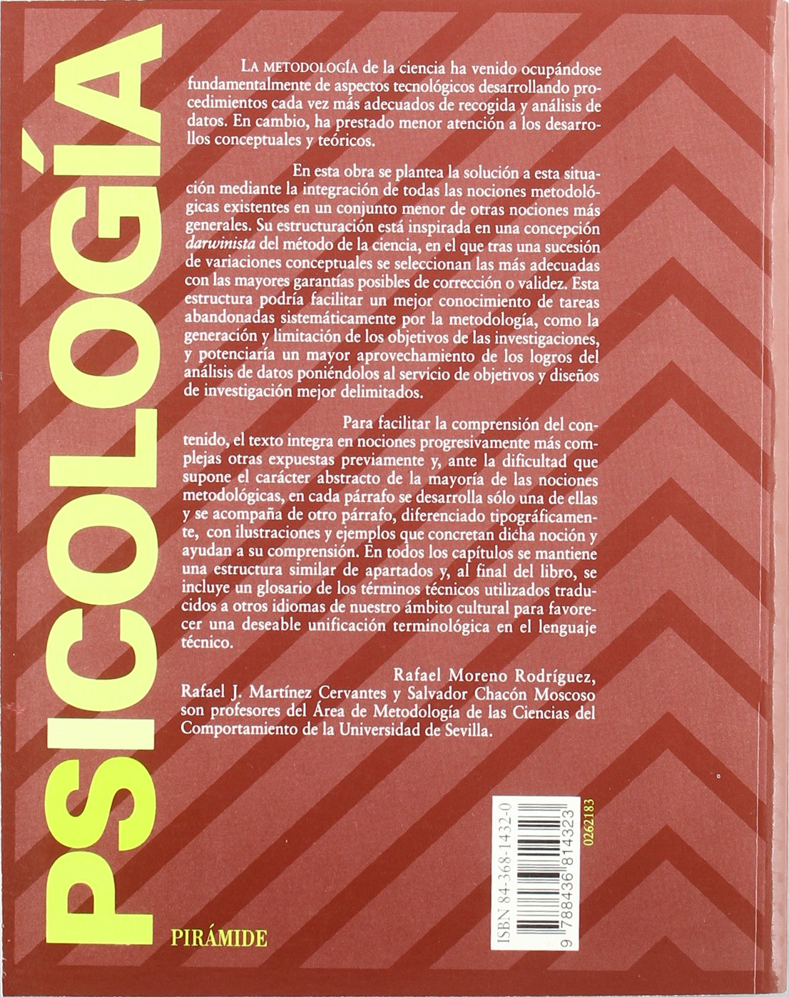 La metodología de la ciencia ha venido ocupándose fundamentalmente de aspectos tecnológicos desarrollando procedimientos cada vez más adecuados de recogida y análisis de datos. En cambio, ha prestado menor atención a los desarrollos conceptuales y teóricos. En esta obra se plantea la solución a esta situación mediante la integración de todas las nociones metodológicas existentes en un conjunto menor de otras nociones más generales. Su estructuración está inspirada en una concepción darwinista del método de la ciencia, en el que tras una sucesión de variaciones conceptuales se seleccionan las más adecuadas con las mayores garantías posibles de corrección o validez. Esta estructura podría facilitar un mejor conocimiento de tareas abandonadas sistemáticamente por la metodología, como la generación y limitación de los objetivos de las investigaciones, y potenciaría un mayor aprovechamiento de los logros del análisis de datos poniéndolos al servicio de objetivos y diseños de investigación mejor delimitados. Para facilitar la comprensión del contenido, el texto integra en nociones progresivamente más complejas otras expuestas previamente y, ante la dificultad que supone el carácter abstracto de la mayoría de las nociones metodológicas, en cada párrafo se desarrolla sólo una de ellas y se acompaña de otro párrafo, diferenciado tipográficamente, con ilustraciones y ejemplos que concretan dicha noción y ayudan a su comprensión. En todos los capítulos se mantiene una estructura similar de apartados y, al final del libro, se incluye un glosario de los términos técnicos utilizados traducidos a otros idiomas de nuestro ámbito cultural para favorecer una deseable unificación terminológica en el lenguaje técnico.