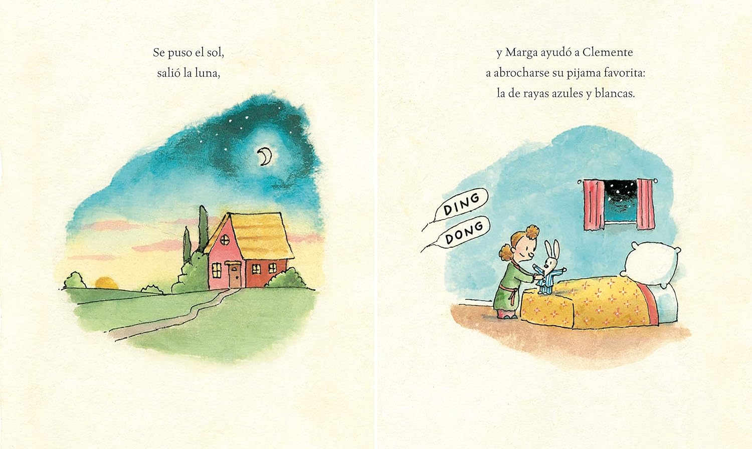 Es de noche. Maggie ayuda al pequeño conejo Clement a abotonarse el pijama. En ese momento llaman a la puerta. Son Jean y Alexander, un elefantito y un bebé oso. Ambos traen sus pijamas, pues pasarán la noche con Celement. Sin embargo, ninguno de ellos tiene sueño. Así que organizan una fiesta de pijamas con diferentes juegos. Luego miran las estrellas, escuchan a un pájaro cantar y Maggie los invita a tomar una pequeña cena. Finalmente, los tres animalitos comienzan a sentirse soñolientos y, tras lavarse los dientes, se van a dormir. Un ejemplo más de la sutileza y sensibilidad de Patrick McDonnell, autor de: Yo, Jane, El monstruo de los monstruos y Como en el cielo, todos ellos publicados por Océano Travesía.