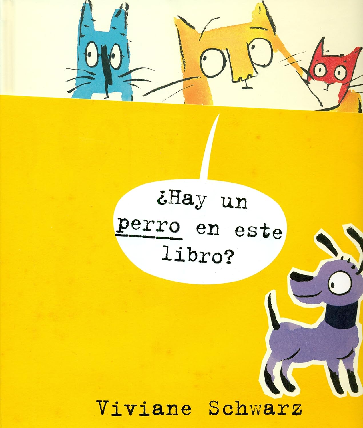 Tres gatos tienen miedo de que haya un perro en el mismo libro y le piden al lector que les ayude a comprobarlo levantando pestañitas.