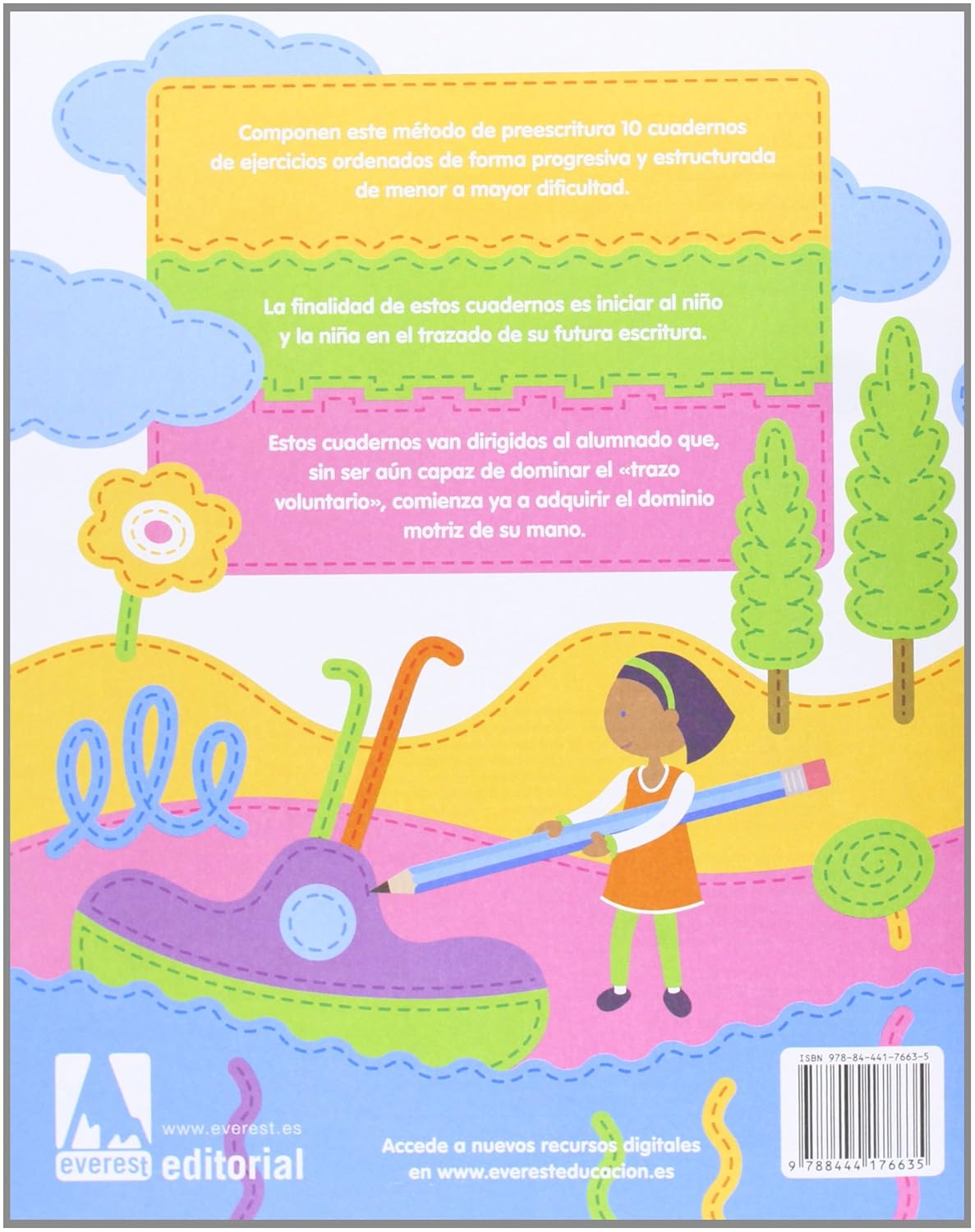 Componen este método de preescritura 10 cuadernos de ejercicios ordenados de forma progresiva y estructurada de menor a mayor dificultad. Su finalidad es la de iniciar al niño en el desarrollo de las habilidades motrices finas que necesitará en el futuro para la escritura. Es un método analítico, que se basa en la repetición por separado de los movimientos de la mano, hasta llegar a conseguir una habilidad motora que permita después trazar, todas las letras.