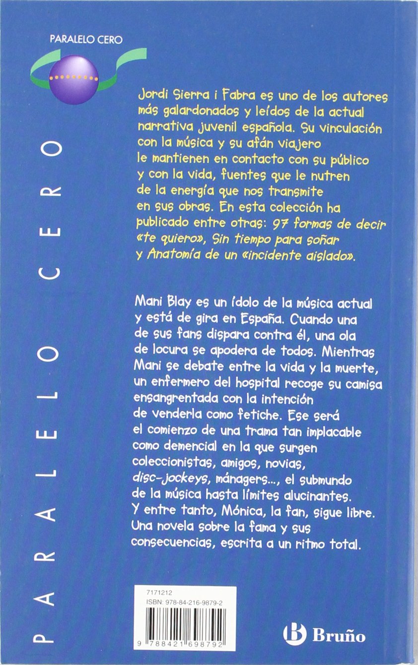 Mani Blay es un ídolo de la música actual y está de gira en España. Cuando una de sus fans dispara contra él, una ola de locura se apodera de todos. Mientras Mani se debate entre la vida y la muerte, un enfermero del hospital recoge su camisa ensangrentada con la intención de venderla como fetiche. Ese será el comienzo de una trama tan implacable como demencial en la que surgen coleccionistas, amigos, novias, disc-jockeys, mánagers…, el submundo de la música hasta límites alucinantes. Y entre tanto, Mónica, la fan, sigue libre. Una novela sobre la fama y sus consecuencias, escrita a un ritmo total.