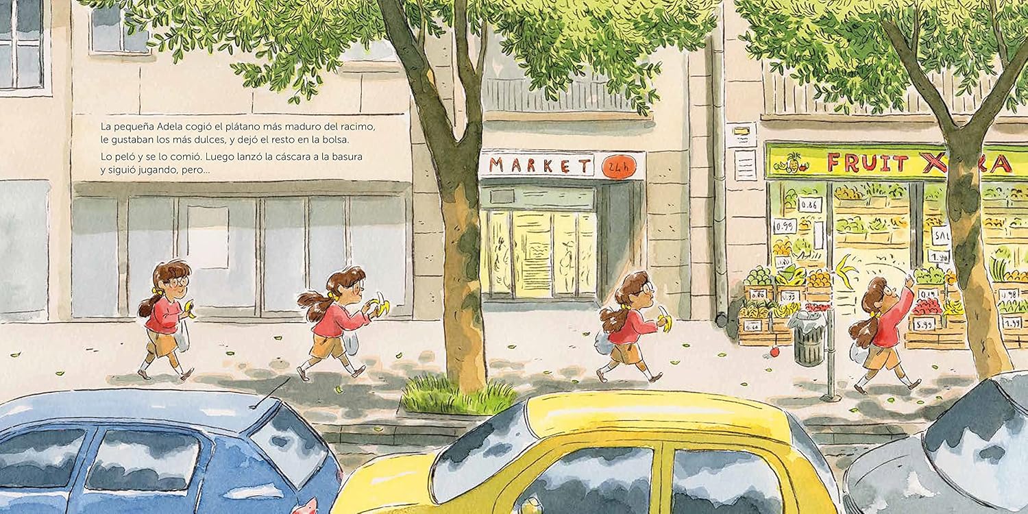 ¿Has pisado alguna vez una cáscara de plátano? ¿Has visto a alguien caer por su culpa? Esta historia va de eso, de una cáscara de plátano que termina donde no debía, en el suelo, provocando el caos en la ciudad… ¿Te atreves a leerla… sin reírte?