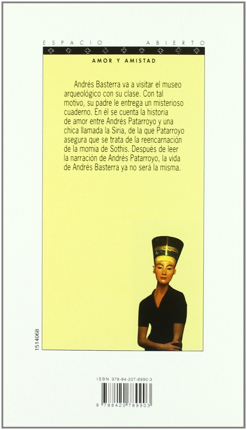 Andrés Basterra va a visitar el museo arqueológico con su clase. Con tal motivo, su padre le entrega un misterioso cuaderno. En él se cuenta la historia de amor entre Andrés Patarroyo y una chica llamada la Siria, de la que Patarroyo asegura que se trata de la reencarnación de la momia de Sothis. Después de leer la narración de Andrés Patarroyo, la vida de Andrés Basterra ya no será la misma.