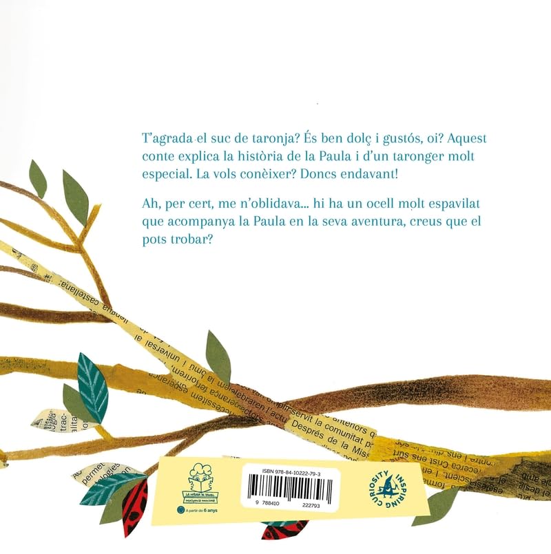Paula supera les seves pors en cuidar un taronger, descobrint la importància de l’aigua i el valor de la valentia i el creixement personal.En un món on laigua representa un gran temor per a Paula,els seus pares li regalen un present inesperat: un taronger. Amb la responsabilitat de regar-ho cada dia, Paula inicia un viatge de descobriment, aprenent no només sobre la importància vital de laigua, sinó també sobre el valor de superar les seves pors. A través daquest taronger, Paula comprèn que, com les plantes, ella també necessita laigua per créixer i florir. Valors implícits Aquesta tendra història ensenya als nens el valor denfrontar-se a les pors i la importància de la perseverança. A través de cuidar una taronja, Paula aprèn sobre responsabilitat, el cicle de la vida i com superar obstacles personals. Un relat que inspira valentia i creixement interior.