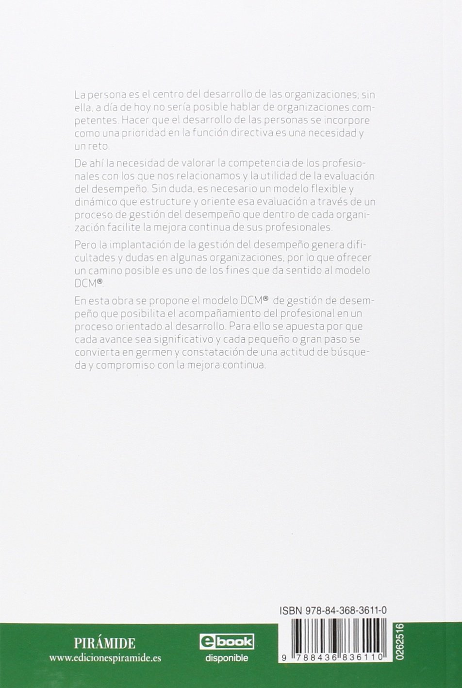 La persona es el centro del desarrollo de las organizaciones; sin ella, a día de hoy no sería posible hablar de organizaciones competentes. Hacer que el desarrollo de las personas se incorpore como una prioridad en la función directiva es una necesidad y un reto. De ahí la necesidad de valorar la competencia de los profesionales con los que nos relacionamos y la utilidad de la evaluación del desempeño. Sin duda, es necesario un modelo flexible y dinámico que estructure y oriente esa evaluación a través de un proceso de gestión del desempeño que dentro de cada organización facilite la mejora continua de sus profesionales. Pero la implantación de la gestión del desempeño genera dificultades y dudas en algunas organizaciones, por lo que ofrecer un camino posible es uno de los fines que da sentido al modelo DCM®. En esta obra se propone el modelo DCM® de gestión de desempeño que posibilita el acompañamiento del profesional en un proceso orientado al desarrollo. Para ello se apuesta por que cada avance sea significativo y cada pequeño o gran paso se convierta en germen y constatación de una actitud de búsqueda y compromiso con la mejora continua.