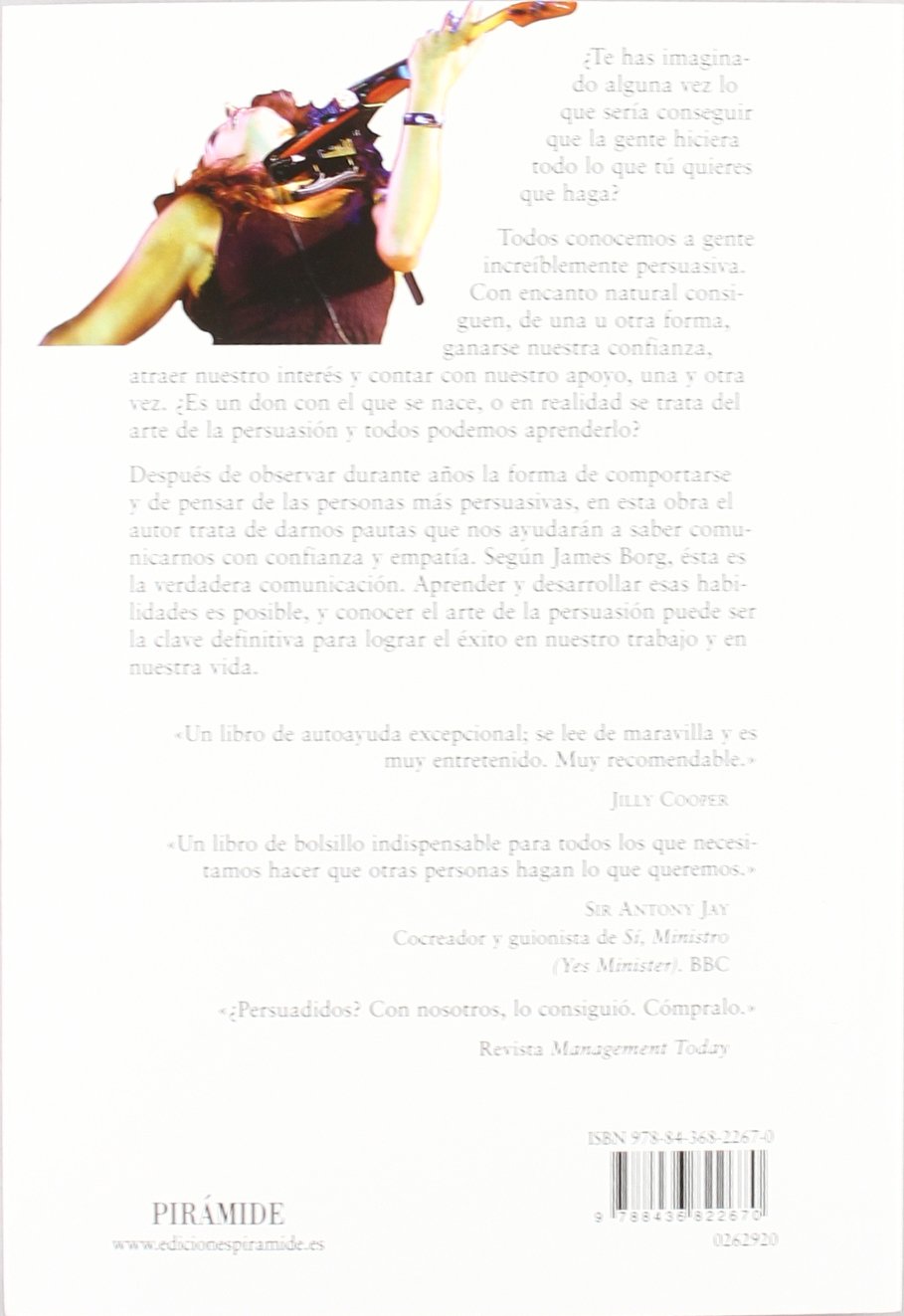 ¿Te has imaginado alguna vez lo que sería conseguir que la gente hiciera todo lo que tú quieres que haga? Todos conocemos a gente increíblemente persuasiva. Con encanto natural consiguen, de una u otra forma, ganarse nuestra confianza, atraer nuestro interés y contar con nuestro apoyo, una y otra vez. ¿Es un don con el que se nace, o en realidad se trata del arte de la persuasión y todos podemos aprenderlo? Después de observar durante años la forma de comportarse y de pensar de las personas más persuasivas, en esta obra el autor trata de darnos pautas que nos ayudarán a saber comunicarnos con confianza y empatía. Según James Borg, ésta es la verdadera comunicación. Aprender y desarrollar esas habilidades es posible, y conocer el arte de la persuasión puede ser la clave definitiva para lograr el éxito en nuestro trabajo y en nuestra vida.