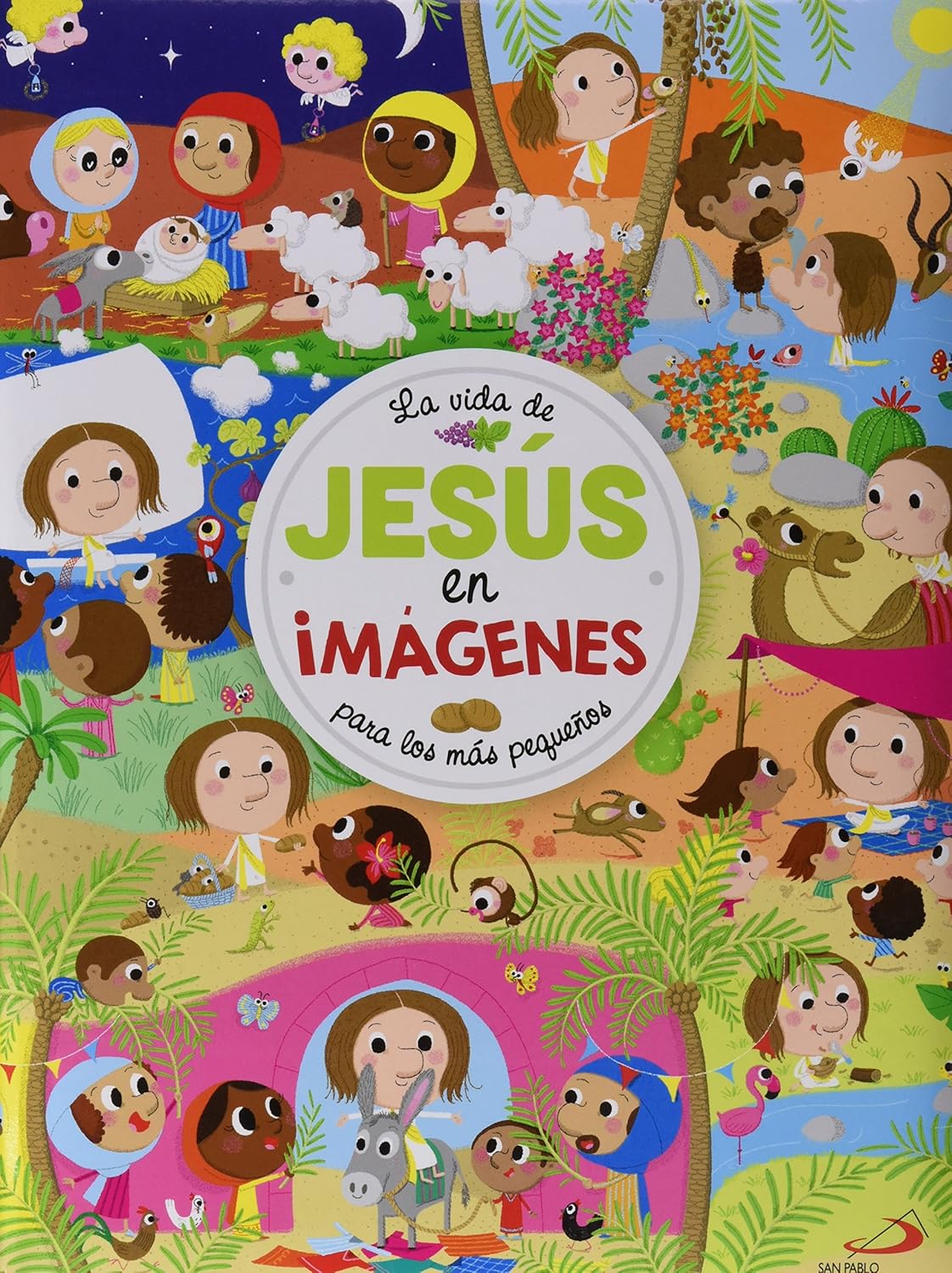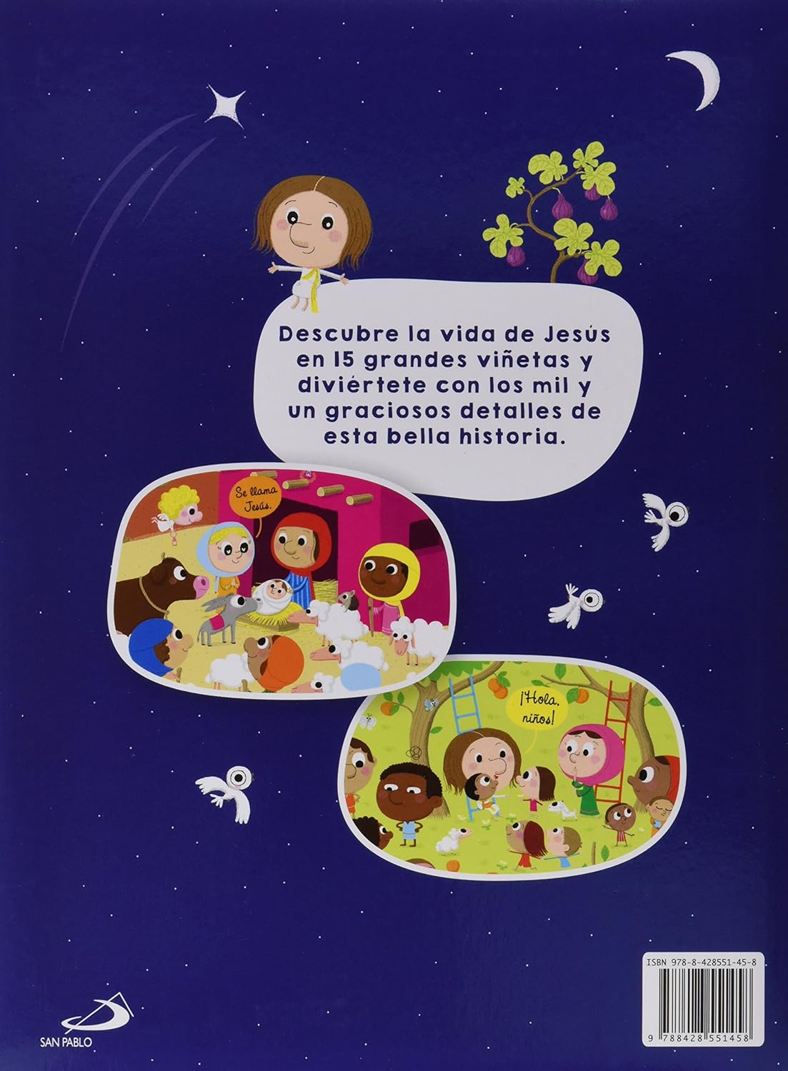Conoce a Jesús, sus palabras y sus acciones contemplando las escenas de cada página. Busca todos los animales y lee con atención lo que dicen los personajes en los bocadillos de texto. La vida de Jesús en 15 escenas que ayudarán a los niños a conocer a Jesús y los episodios más importantes de su vida de un modo ameno. En las escenas, presentadas en una doble página con llamativas y coloridas ilustraciones, intervienen numerosos personajes, retratados de forma simpática.