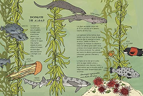 Sumérgete en una aventura acuática con este magnífico recorrido por los océanos del mundo. Explora los arrecifes de coral, viaja a los mares de las regiones polares y bucea en las profundidades para conocer a las criaturas marinas que las habitan. Descubre cómo se formaron los océanos, por qué el agua del mar es salada y conoce a todos sus habitantes, desde los crustáceos hasta los cetáceos, desde los más minúsculos, como el fitoplancton, hasta los más grandes, como las ballenas. Aprende también sobre las embarcaciones y los faros que salpican las costas, y sobre el terrible impacto del plástico y el calentamiento global en nuestros mares. Combinando arte y ciencia, los bellísimos y detallados dibujos de Julia Rothman examinan los aspectos más fascinantes de la vida que habita por encima y por debajo de las olas del mar. Con este libro podrás: • examinar la anatomía de fascinantes criaturas marinas • sumergirte en lo más profundo para conocer la vida marina que vive en los abismos • investigar el universo acuático desde la costa hasta el fondo del océano • conocer cómo el cambio climático y el plástico están impactando en los mares y océanos de nuestro planeta.