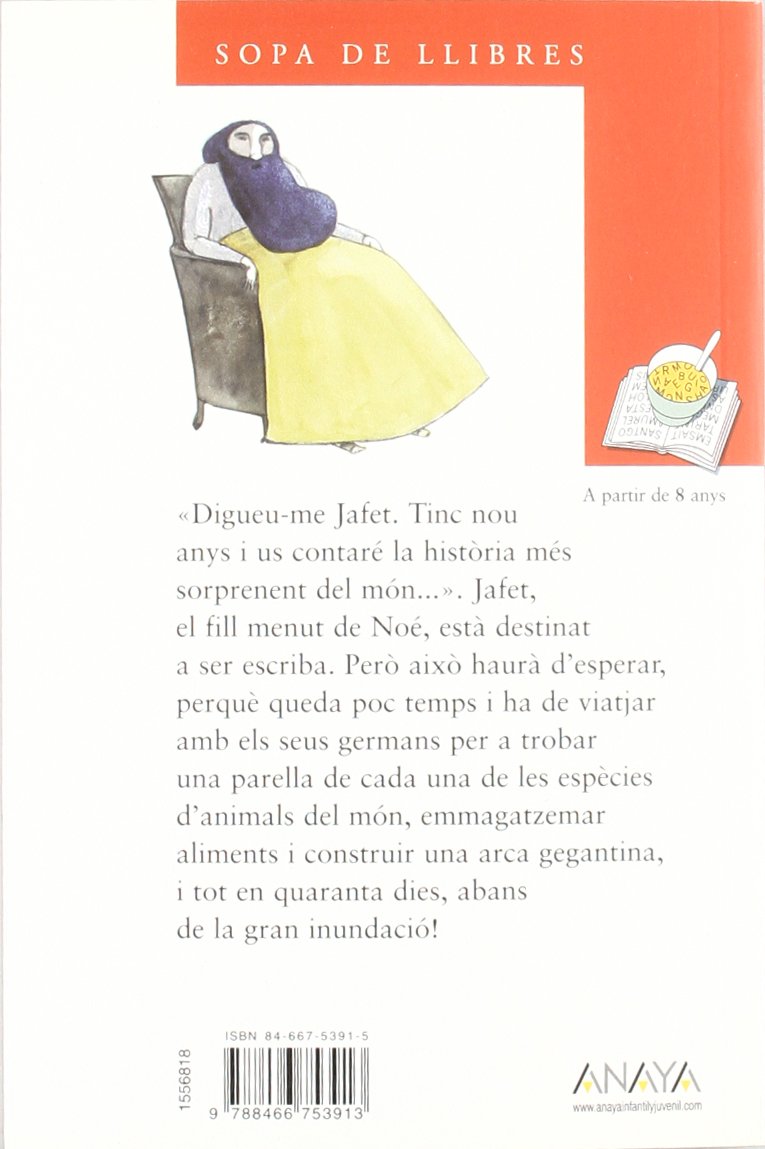 «Digueu-me Jafet. Tinc nou anys i us contaré la història més sorprenent del món…». Jafet, el fill menut de Noé, està destinat a ser escriba. Però això haurà d’esperar, perquè queda poc temps i ha de viatjar amb els seus germans per a trobar una parella de cada una de les espècies d’animals del món, emmagatzemar aliments i construir una arca gegantina, i tot en quaranta dies, abans de la gran inundació!