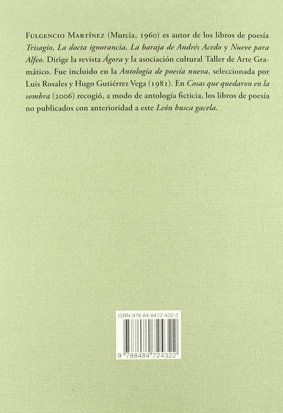 Fulgencio Martínez (Murcia, 1960) es autor de los libros de poesía Trisagio, La docta ignorancia, La baraja de Andrés Acedo y Nueve para Alfeo. Dirige la revista Ágora y la asociación cultural Taller de Arte Gramático. Fue incluido en la Antología de poesía nueva, seleccionada por Luis Rosales y Hugo Gutiérrez Vega (1981). En Cosas que quedaron en la sombra (2006) recogió, a modo de antología ficticia, los libros de poesía no publicados con anterioridad a este León busca gacela.