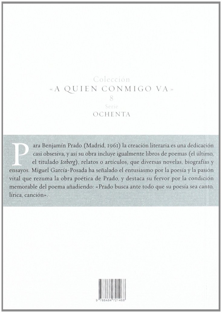 Para Benjamín Prado (Madrid, 1961) la creación literaria es una dedicación casi obsesiva, y así su obra incluye igualmente libros de poemas (el último, el titulado Iceberg), relatos o artículos, que diversas novelas, biografías y ensayos. Miguel García-Posada ha señalado el entusiasmo por la poesía y la pasión vital que rezuma la obra poética de Prado, y destaca su fervor por la condición memorable del poema añadiendo: «Prado busca ante todo que su poesía sea canto, lírica, canción».
