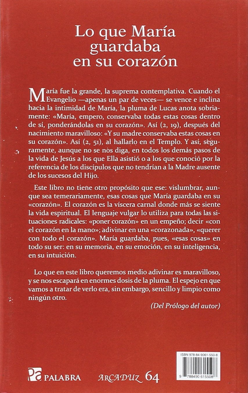 Guiado por la excepcional pluma de Pemán, el lector se acercará a María desde una perspectiva nueva, íntima, recorriendo con Ella los acontecimientos que marcaron su vida. María fue la grande, la suprema contemplativa. Cuando el Evangelio -apenas un par de veces- se vence e inclina hacia la intimidad de María, la pluma de Lucas anota sobriamente: “María, empero, conservaba todas estas cosas dentro de sí, ponderándolas en su corazón”. Así (2, 19), después del nacimiento maravilloso: “Y su madre conservaba estas cosas en su corazón”. Así (2, 51), al hallarlo en el Templo. Y así, seguramente, aunque no se nos diga, en todos los demás pasos de la vida de Jesús a los que Ella asistió o a los que conoció por la referencia de los discípulos que no tendrían a la Madre ausente de los sucesos del Hijo. Este libro no tiene otro propósito que ese: vislumbrar, aunque sea temerariamente, esas cosas que María guardaba en su “corazón”. El corazón es la víscera carnal donde más se siente la vida espiritual. El lenguaje vulgar lo utiliza para todas las situaciones radicales: “poner corazón” en un empeño; decir “con el corazón en la mano”; adivinar en una “corazonada”, “querer con todo el corazón”. María guardaba, pues, “esas cosas” en todo su ser: en su memoria, en su emoción, en su inteligencia, en su intuición. Lo que en este libro queremos medio adivinar es maravilloso, y se nos escapará en enormes dosis de la pluma. El espejo en que vamos a tratar de verlo era, sin embargo, sencillo y limpio como ningún otro.