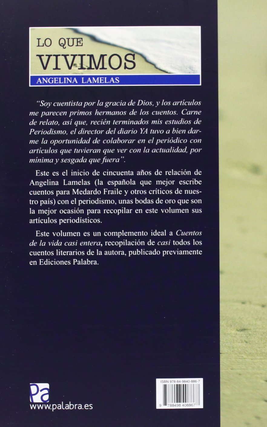 Con ocasión de sus bodas de oro con el periodismo, la prestigiosa escritora Angelina Lamelas recopila en este volumen sus artículos periodísticos a los que considera “primos hermanos de los cuentos”.