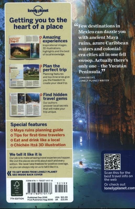 Few Mexican destinations can dazzle you with ancient Maya ruins, azure Caribbean waters and colonial cities all in one fell swoop. Actually, there’s only one – the Yucatán.Lonely Planet will get you to the heart of Cancun, Cozumal & the Yucatan, with amazing travel experiences and the best planning advice:• Inspirational images, 3D illustrations, highlights and recommendations from our expert authors.• Planning features and top itineraries to help you plan the perfect trip.• Local secrets and hidden travel gems that will make your trip unique.• Plus Maya ruins planning guide, tips for first-time travelers, eat and drink like a local, Chichén Itzá 3D illustration.Coverage includes: Planning chapters, Cancun & Around, Issla Mujers, Isla Cozumel, Riviera Maya, Costa Maya & Southern Caribbean Coast, Yucatan State & the Maya Heartland, Campeche & Around, Chipas, Understand and Survival chapters.