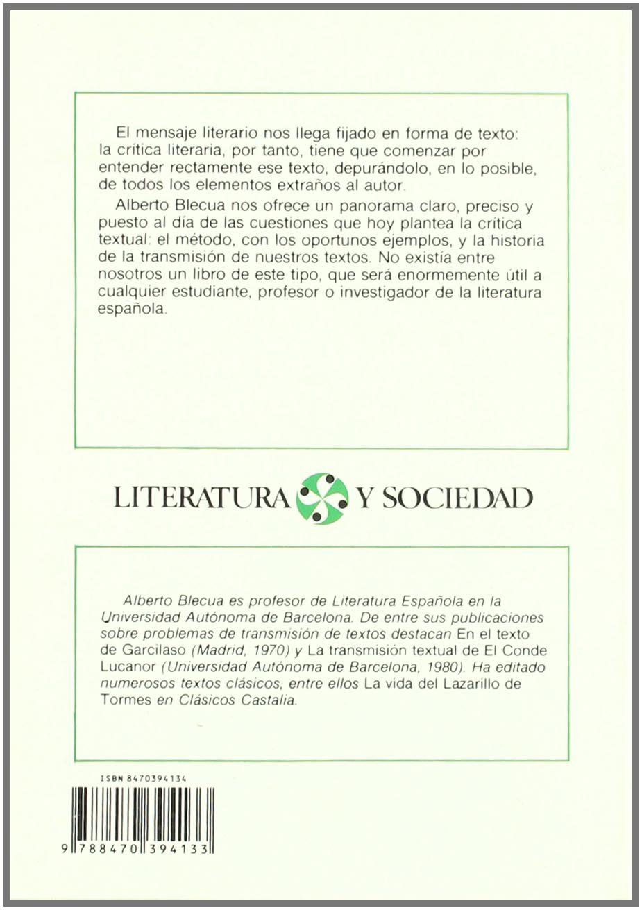 Advertencia Preliminar. Primera Parte: Teoría-Práctica. Libro Primero: Recensio. Libro Segundo: Constitutio textus. Segunda Parte: la transmisión en la historia. Libro Primero: la transmisión en la historia de los textos medievales. Libro Segundo: la transmisión en los textos en los siglos XVI y XVII. Libro Tercero: la transmisión en los siglos XVIII, XIX y XX. Láminas. Observaciones a las láminas. Bibliografía. Índice de nombres y obras. Índice de voces técnicas. Índice general.
