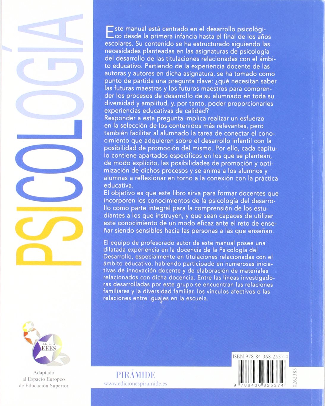 Este manual está centrado en el desarrollo psicológico desde la primera infancia hasta el final de los años escolares. Su contenido se ha estructurado siguiendo las necesidades planteadas en las asignaturas de psicología del desarrollo de las titulaciones relacionadas con el ámbito educativo. Partiendo de la experiencia docente de las autoras y autores en dicha asignatura, se ha tomado como punto de partida una pregunta clave: ¿qué necesitan saber las futuras maestras y los futuros maestros para comprender los procesos de desarrollo de su alumnado en toda su diversidad y amplitud, y, por tanto, poder proporcionarles experiencias educativas de calidad? Responder a esta pregunta implica realizar un esfuerzo en la selección de los contenidos más relevantes, pero también facilitar al alumnado la tarea de conectar el conocimiento que adquieren sobre el desarrollo infantil con la posibilidad de promoción del mismo. Por ello, cada capítulo contiene apartados específicos en los que se plantean, de modo explícito, las posibilidades de promoción y optimización de dichos procesos y se anima a los alumnos y alumnas a reflexionar en torno a la conexión con la práctica educativa. El objetivo es que este libro sirva para formar docentes que incorporen los conocimientos de la psicología del desarrollo como parte integral para la comprensión de los estudiantes a los que instruyen, y que sean capaces de utilizar este conocimiento de un modo eficaz ante el reto de enseñar siendo sensibles hacia las personas a las que enseñan.