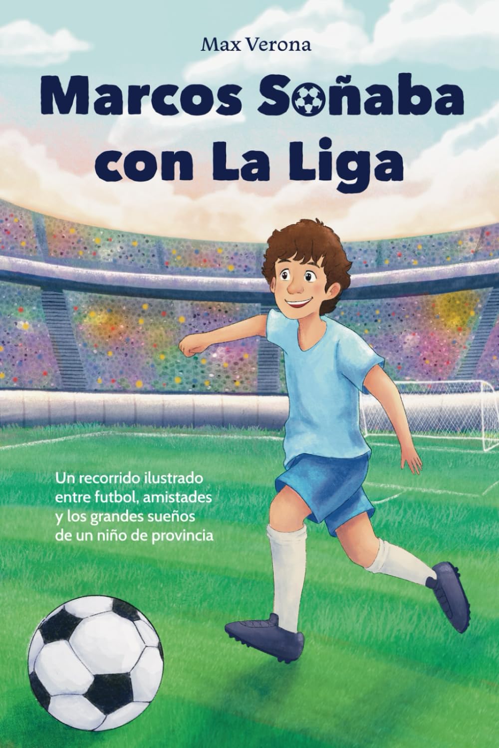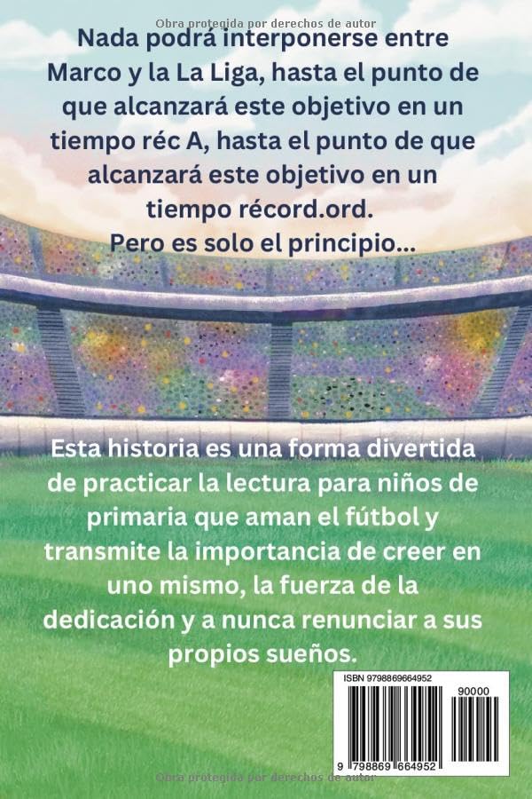 ⚽️⭐️ Un viaje en el corazón del fútbol y los sueños ⭐️⚽️ “Marcos Soñaba con La Liga” narra las aventuras de un niño vivaz de una pequeña ciudad en Andalucía, que sueña con jugar en la Liga.Su pasión por el fútbol y su indomable determinación lo llevarán a alcanzar este sueño en tiempo récord, pero el viaje apenas comienza…Este libro ilustrado es una joya para los niños de primaria apasionados por el fútbol, ofreciendo no solo una historia emocionante, sino también valiosas enseñanzas sobre la importancia de creer en uno mismo, la dedicación y la perseverancia en la persecución de sus sueños.Los niños amarán este libro porque:Se identificarán con la historia de Marco viviendo con él cada emocionante partido;Las ilustraciones vibrantes transportarán a los jóvenes lectores directamente a los campos de fútbol, encendiendo su pasión por el deporte;No podrán dejar el libro para descubrir cuál será la próxima aventura de Marco;Descubrirán el valor de la perseverancia y la importancia de nunca rendirse.Los padres apreciarán este libro porque:Envía un mensaje poderoso sobre cómo la ambición y el compromiso pueden llevar al éxito;Inspirará a los niños a perseguir sus sueños, sin importar cuán grandes sean;Promueve la lectura y atrae a los niños a los libros con una historia envolvente y motivadora;Crea momentos preciosos de compartir y complicidad entre padres e hijos durante la lectura.Regala a tus hijos una aventura inolvidable, lee con ellos “Marcos Soñaba con La Liga” y ayúdalos a descubrir cuán grandes pueden ser!Edad de lectura recomendada: 6 – 12 años¡Haz clic en “Comprar Ahora”!