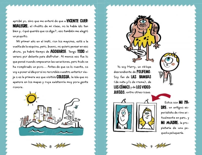 Acompaña a Harry y Cerdon, los protagonistas de esta nueva serie de libros de aventuras ambientada en el mundo de la mitología y cargada de muuuuucho humor.¡Llorarás de risa!Harry no es un chaval normal. Harry es un cíclope. Y sigue teniendo un solo ojo. En mitad de la cara. Y sigue teniendo un mejor amigo que es mitad dragón y mitad cerdo: Cerdon.Los dos viven en la isla de Colossa donde por fin han llegado las ACHIDAS ESPHERIKAS 3000.Harry está como loco por conseguirlas, pero no va a ser tan fácil… Alguien ha robado el último par. Esperemos que no sea Vicente Cuernoalegre…¿Los acompañas en esta colosal aventura?