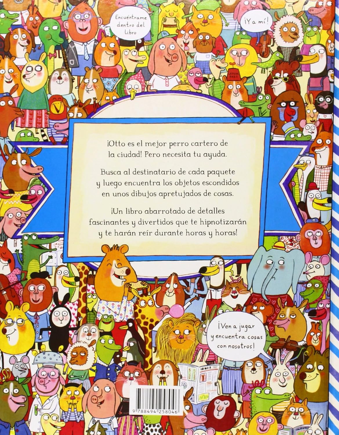 Otto es el mejor perro cartero de la ciudad, ¡ayúdale a repartir sus paquetes! Busca al destinatario de cada paquete y luego encuentra los objetos escondidos en unos dibujos apretujados de cosas. Un libro lleno de sorpresas y abarrotado de detalles fascinantes y divertidos que te hipnotizará y te hará reír durante horas. Si te gustó buscar a Wally entre los miles de paisajes que ideó Richard Scarry, ¡este es tu libro!
