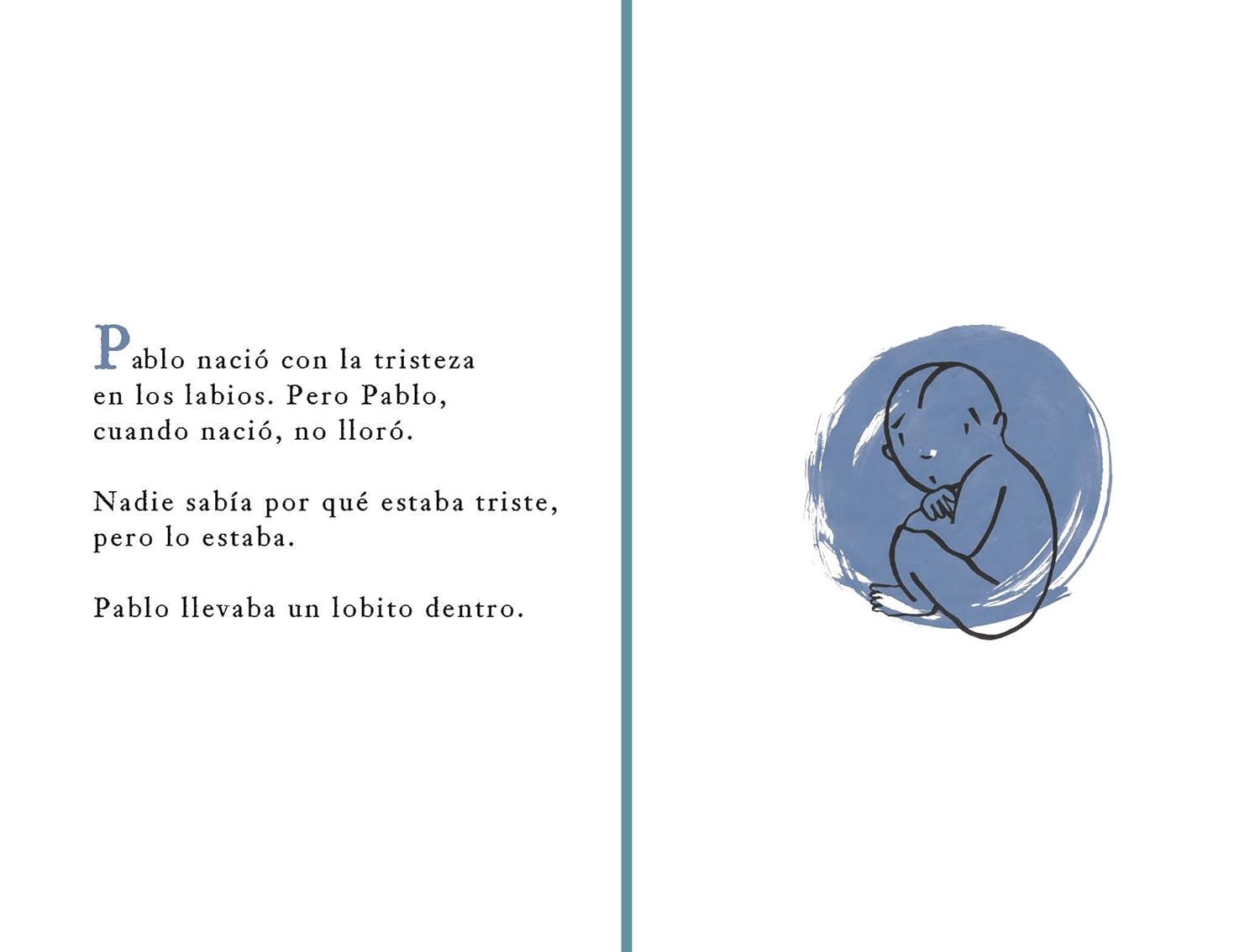 Pablo es un niño que nació con la tristeza en los labios, pero es incapaz de llorar. Todos ignoran el motivo de su tristeza. Tampoco saben que dentro de él habita un lobito. Conforme Pablo crece, el lobito de su interior también se desarrolla. Un día, este personaje no puede más y llora por primera vez en su vida. En ese instante el lobito sale de su interior. Ello representa un cambio radical en su vida cuyas consecuencias serán impredecibles. Mediante un trazo puro y sobrio, Imapla logra una original metáfora de la condición humana.