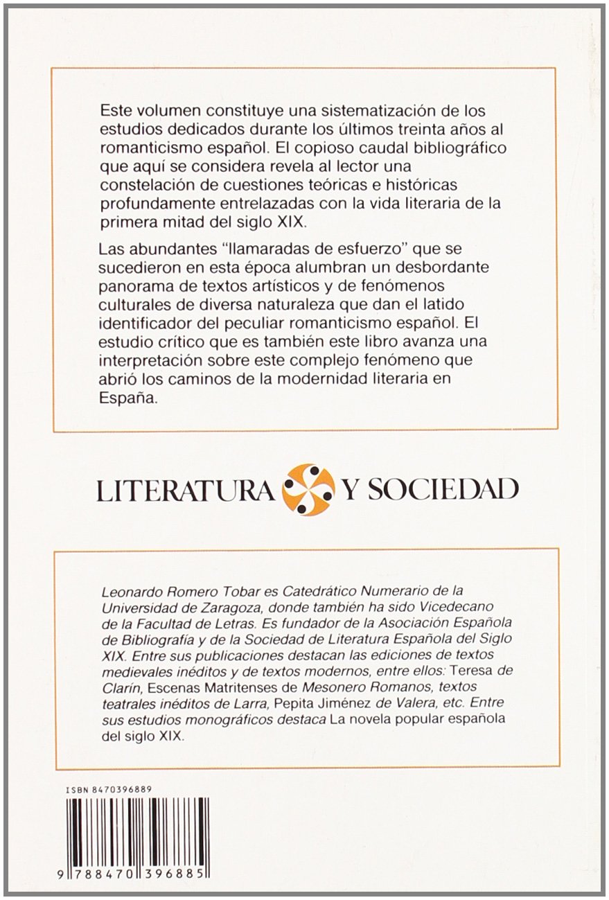 Este volumen constituye una sistematización de los estudios dedicados durante los últimos treinta años al romanticismo español. El copioso caudal bibliográfico que aquí se considera revela al lector una constelación de cuestiones teóricas e históricas profundamente entrelazadas con la vida literaria de la primera mitad del siglo XIX. Las abundantes “llamaradas de esfuerzo” que se sucedieron en esta época alumbran un desbordante panorama de textos artísticos y de fenómenos culturales de diversa naturaleza que dan el latido identificador del peculiar romanticismo español. El estudio crítico que es también este libro avanza una interpretación sobre este complejo fenómeno que abrió los caminos de la modernidad literaria en España.