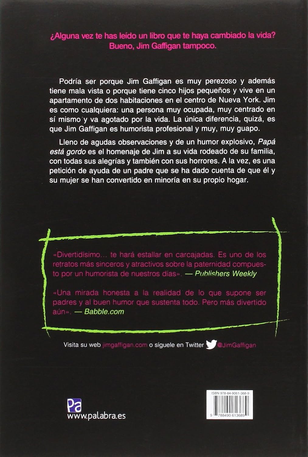 Lleno de agudas observaciones y de un humor explosivo, Papá está gordo es el homenaje de Jim a su vida rodeado de su familia, con todas sus alegrías y también con sus horrores. A la vez, es una petición de ayuda de un padre que se ha dado cuenta de que él y su mujer se han convertido en minoría en su propio hogar.
