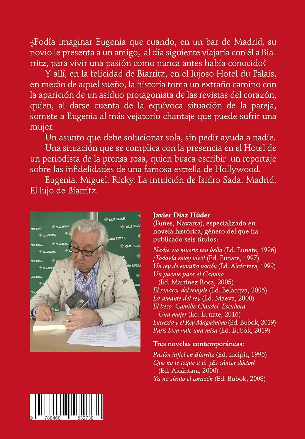 ¿Podía imaginar Eugenia que cuando, en un bar de Madrid, su novio le presenta a un amigo, al día siguiente viajaría con él a Biarritz, para vivir una pasión como nunca antes había conocido? Y allí, en la felicidad de Biarritz, en el lujoso Hotel du Palais, en medio de aquel sueño, la historia toma un extraño camino con la aparición de un asiduo protagonista de las revistas del corazón, quien, al darse cuenta de la equívoca situación de la pareja, somete a Eugenia al más vejatorio chantaje que puede sufrir una mujer. Un asunto que debe solucionar sola, sin pedir ayuda a nadie. Una situación que se complica con la presencia en el Hotel de un periodista de la prensa rosa, quien busca escribir un reportaje sobre las infidelidades de una famosa estrella de Hollywood. Eugenia. Miguel. Ricky. La intuición de Isidro Sada. Madrid. El lujo de Biarritz.