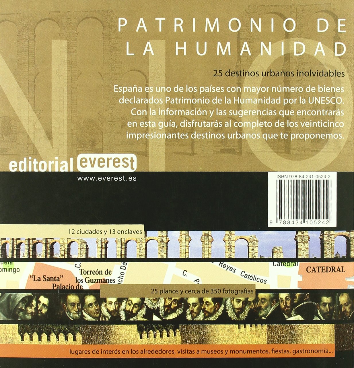 España presenta un riquísimo legado monumental del cual destacan especialmente las ciudades declaradas por la Unesco Patrimonio de la Humanidad: Córdoba (1984,1994), Segovia (1985), Santiago de Compostela (1985), Ávila (1985), Toledo (1986), Cáceres (1986), Salamanca (1988), Cuenca (1996), Alcalá de Henares (1998), San Cristobal de la Laguna (1999) y Úbeda y Baeza (2003). Incluye información detallada de sus museos y monumentos, planos callejeros de todas ellas, alojamientos, restaurantes y teléfonos de interés.