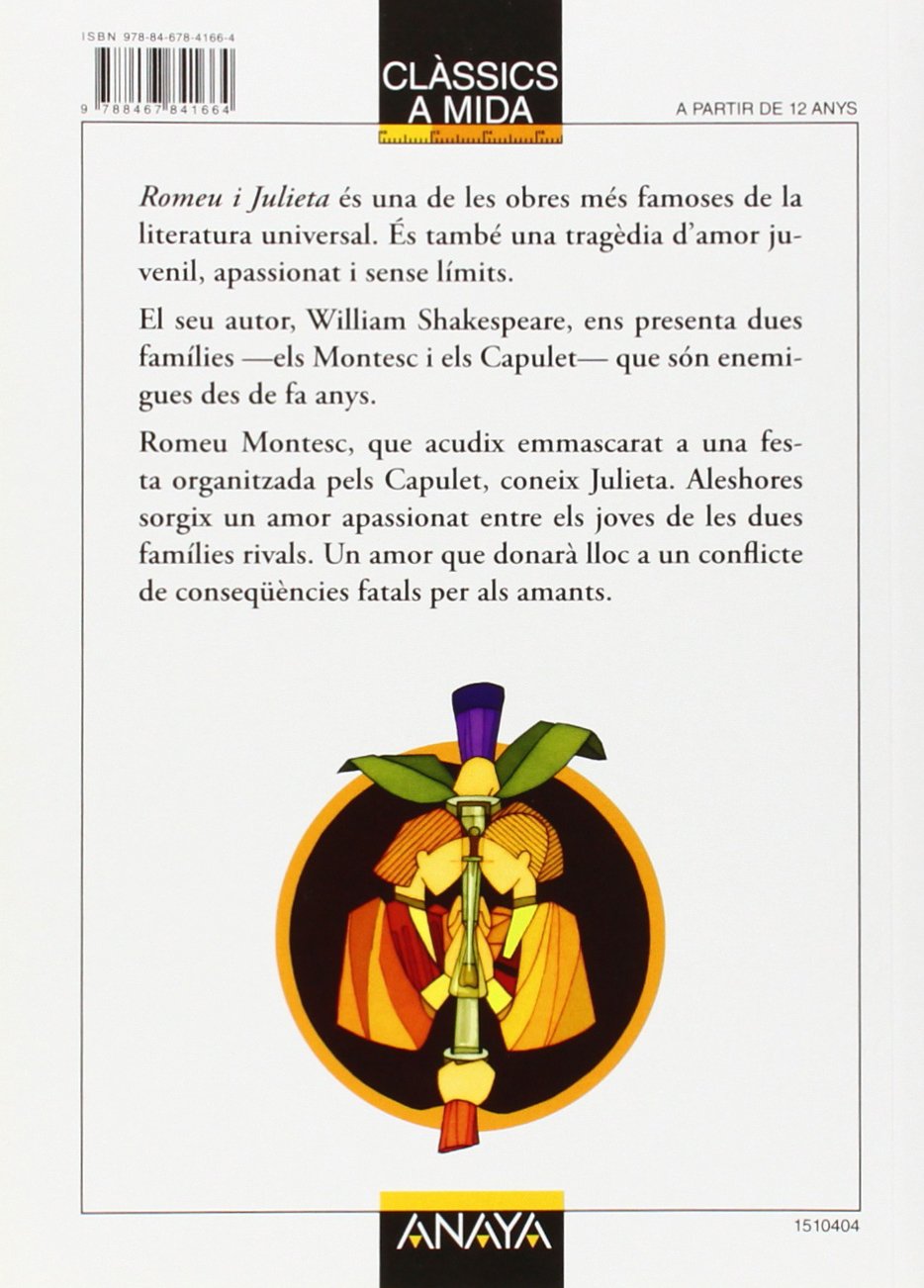 Romeu i Julieta és una de les obres més famoses de la literatura universal. És també una tragèdia d’amor juvenil, apassionat i sense límits. El seu autor, William Shakespeare, ens presenta dues famílies -els Montesc i els Capulet- que són enemigues des de fa anys. Romeu Montesc, que acudix emmascarat a una festa organitzada pels Capulet, coneix Julieta. Aleshores sorgix un amor apassionat entre els joves de les dues famílies rivals. Un amor que donarà lloc a un conflicte de conseqüències fatals per als amants.