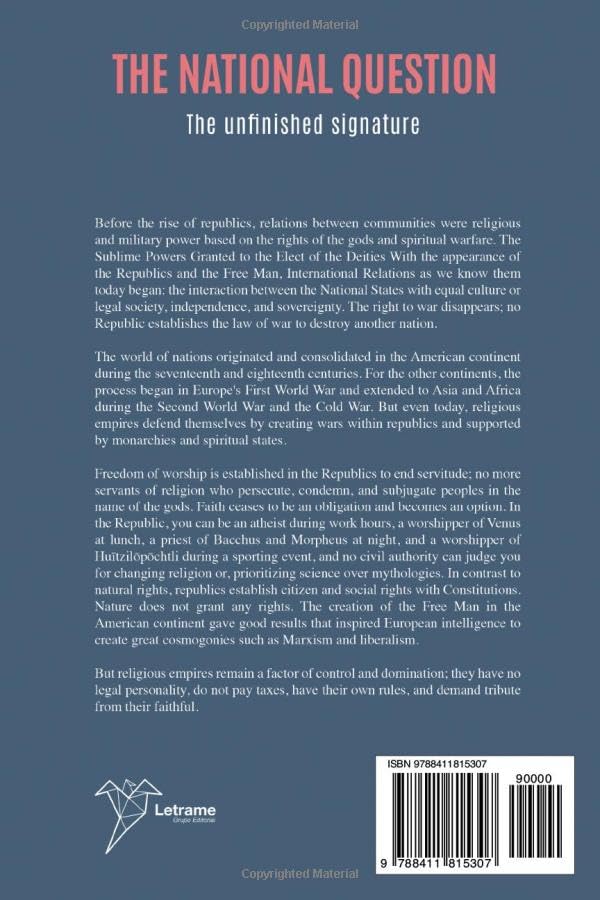 Before the rise of republics, relations between communities were religious and military power based on the rights of the gods and spiritual warfare. The Sublime Powers Granted to the Elect of the DeitiesWith the appearance of the Republics and the Free Man, International Relations as we know them today began: the interaction between the National States with equal culture or legal society, independence, and sovereignty. The right to war disappears; no Republic establishes the law of war to destroy another nation,The world of nations originated and consolidated in the American continent during the seventeenth and eighteenth centuries. For the other continents, the process began in Europe’s First World War and extended to Asia and Africa during the Second World War and the Cold War.But even today, religious empires defend themselves by creating wars within republics and supported by monarchies and spiritual states.Freedom of worship is established in the Republics to end servitude; no more servants of religion who persecute, condemn, and subjugate peoples in the name of the gods. Faith ceases to be an obligation and becomes an option. In the Republic, you can be an atheist during work hours, a worshipper of Venus at lunch, a priest of Bacchus and Morpheus at night, and a worshipper of Huītzilōpōchtli during a sporting event, and no civil authority can judge you for changing religion or, prioritizing science over mythologies. In contrast to natural rights, republics establish citizen and social rights with Constitutions. Nature does not grant any rights. The creation of the Free Man in the American continent gave good results that inspired European intelligence to create great cosmogonies such as Marxism and liberalism.But religious empires remain a factor of control and domination; they have no legal personality, do not pay taxes, have their own rules, and demand tribute from their faithful.
