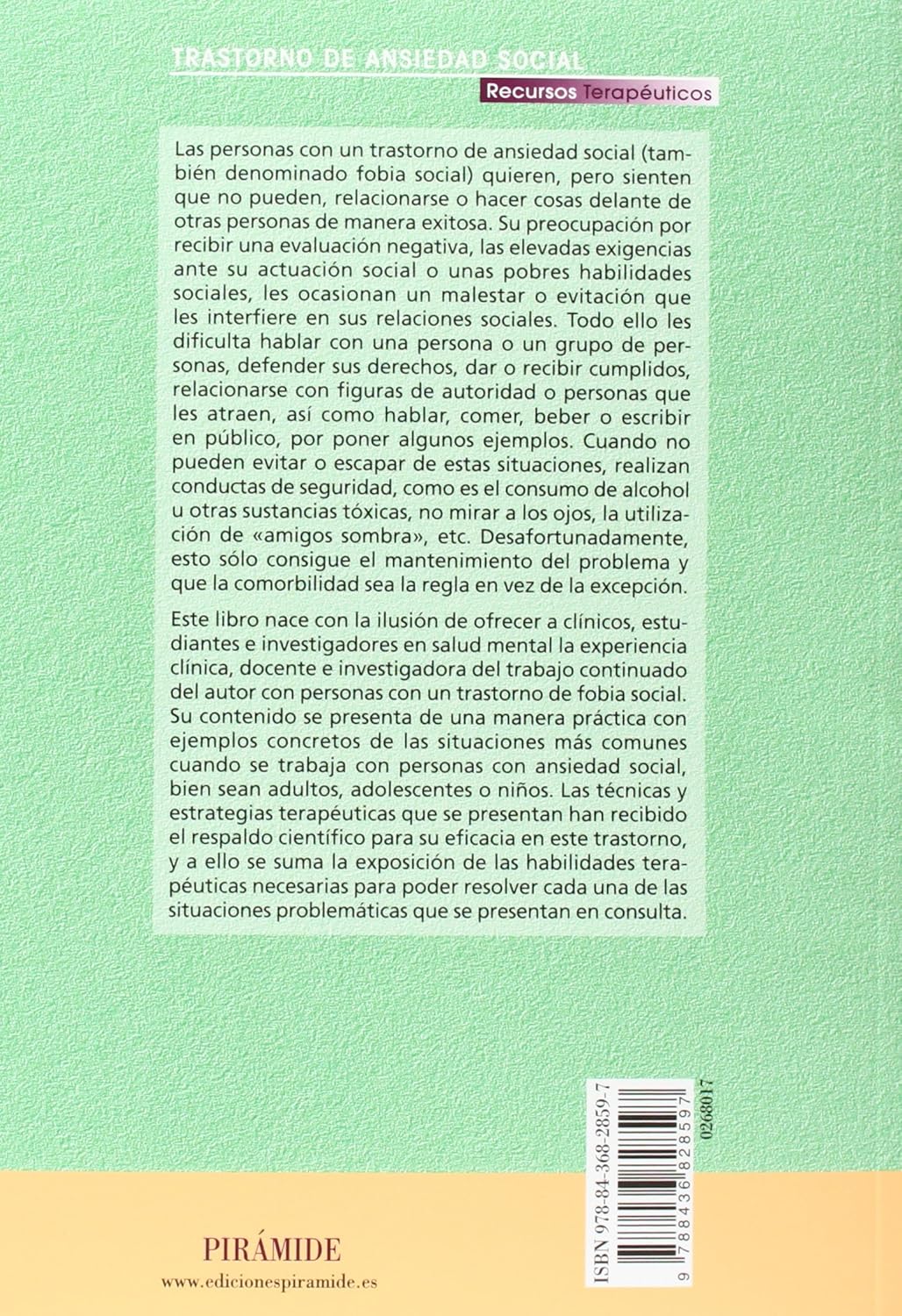 Las personas con un trastorno de ansiedad social (también denominado fobia social) quieren, pero sienten que no pueden, relacionarse o hacer cosas delante de otras personas de manera exitosa. Su preocupación por recibir una evaluación negativa, las elevadas exigencias ante su actuación social o unas pobres habilidades sociales, les ocasionan un malestar o evitación que les interfiere en sus relaciones sociales. Todo ello les dificulta hablar con una persona o un grupo de personas, defender sus derechos, dar o recibir cumplidos, relacionarse con figuras de autoridad o personas que les atraen, así como hablar, comer, beber o escribir en público, por poner algunos ejemplos. Cuando no pueden evitar o escapar de estas situaciones, realizan conductas de seguridad, como es el consumo de alcohol u otras sustancias tóxicas, no mirar a los ojos, la utilización de «amigos sombra», etc. Desafortunadamente, esto sólo consigue el mantenimiento del problema y que la comorbilidad sea la regla en vez de la excepción. Este libro nace con la ilusión de ofrecer a clínicos, estudiantes e investigadores en salud mental la experiencia clínica, docente e investigadora del trabajo continuado del autor con personas con un trastorno de fobia social. Su contenido se presenta de una manera práctica con ejemplos concretos de las situaciones más comunes cuando se trabaja con personas con ansiedad social, bien sean adultos, adolescentes o niños. Las técnicas y estrategias terapéuticas que se presentan han recibido el respaldo científico para su eficacia en este trastorno, y a ello se suma la exposición de las habilidades terapéuticas necesarias para poder resolver cada una de las situaciones problemáticas que se presentan en consulta.