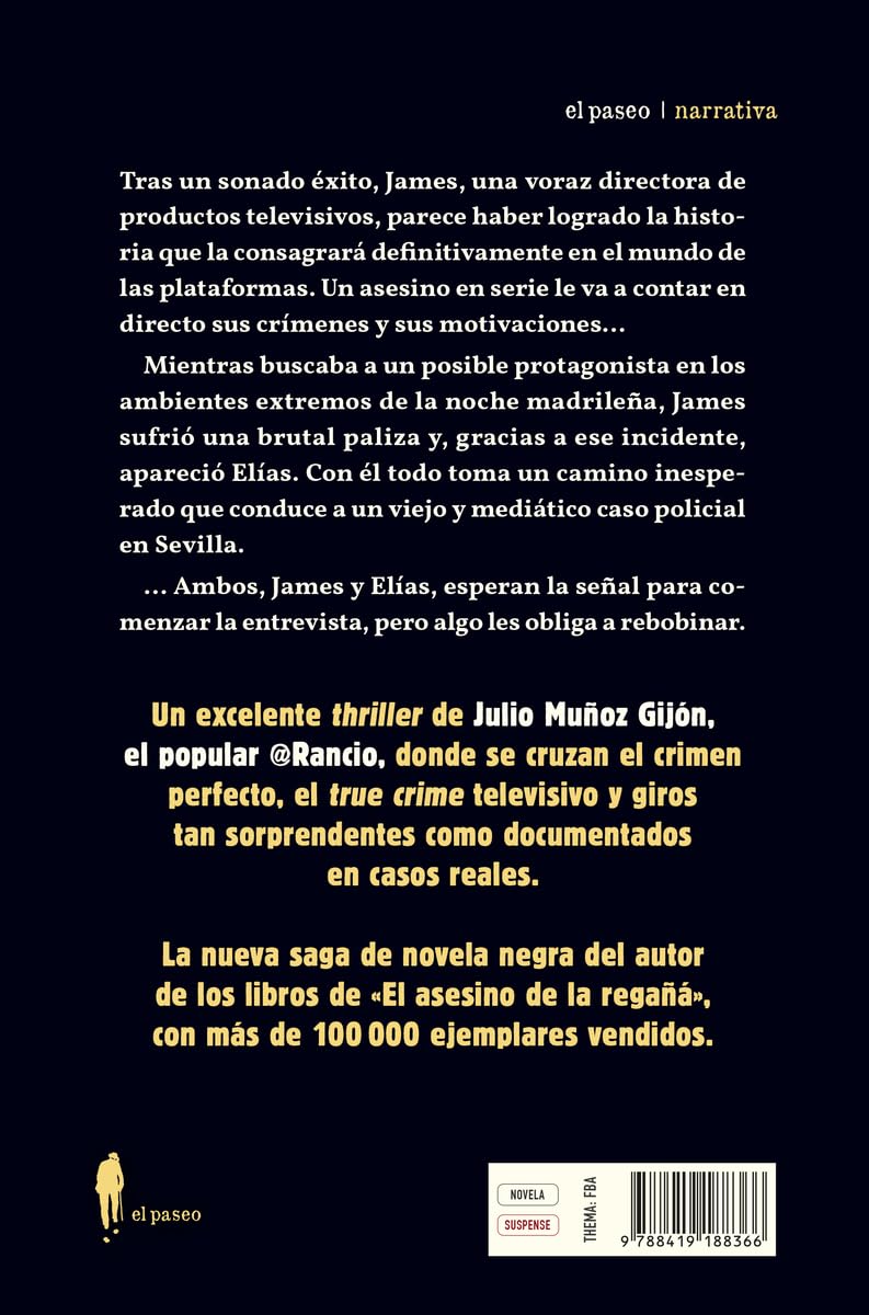 Un excelente thriller de Julio Muñoz Gijón, el popular @Rancio, donde se cruzan el crimen perfecto, el true crime televisivo y giros tan sorprendentes como documentados en casos reales. La nueva saga de novela negra del autor de los libros de “El asesino de la regañá”, con más de 100 000 ejemplares vendidos. Un thriller, con una trama sin tregua, escrito por el popular novelista e influencer Julio Muñoz Gijón @Rancio, en un cambio de registro. El autor inicia una nueva saga de novela negra que ya tiene proyectados dos capítulos más.