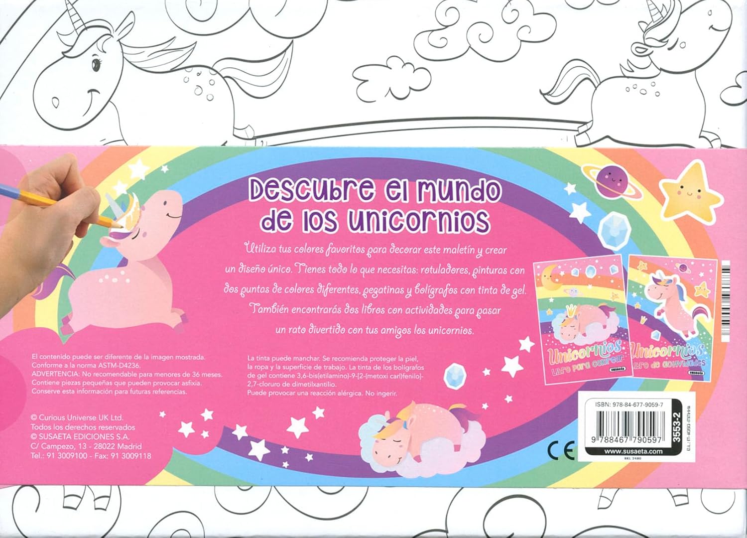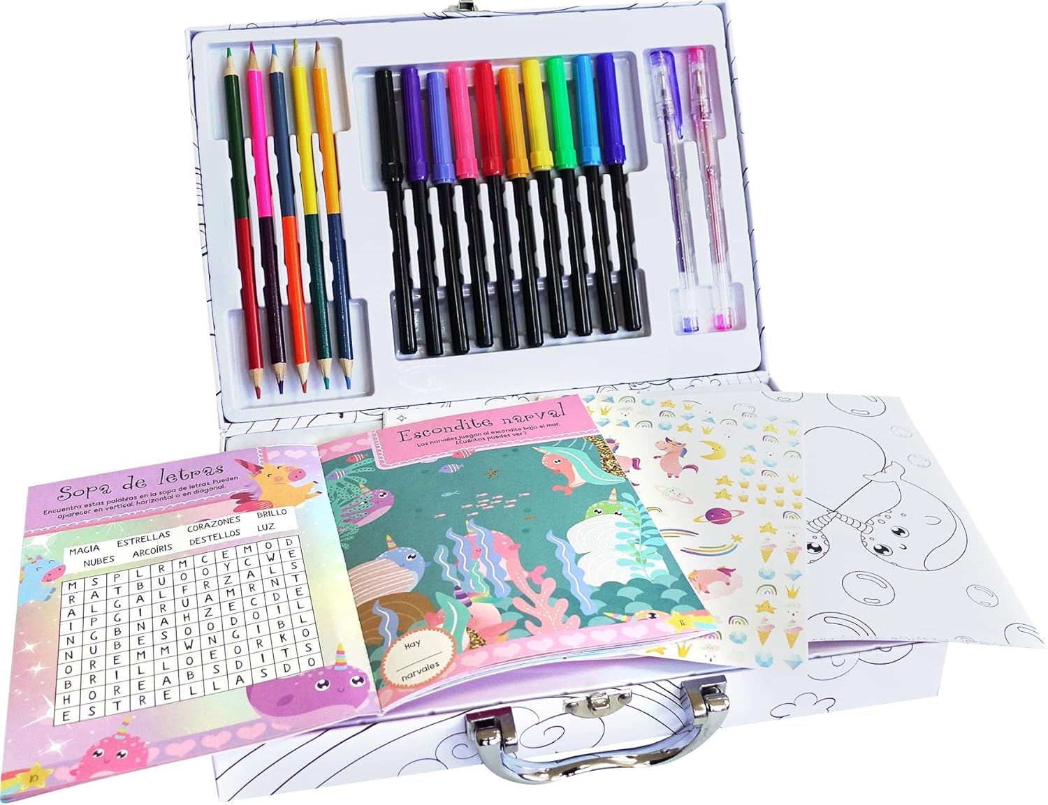 Si eres fan de los unicornios y además te diviertes coloreando, este maletín te va a encantar. Contiene rotuladores, lápices de colores de doble punta, bolígrafos de gel y dos libros… ¡y también pegatinas! Además, también puedes colorear el maletín y utilizarlo después para guardar lo que tú quieras. ¿Qué más necesitas?